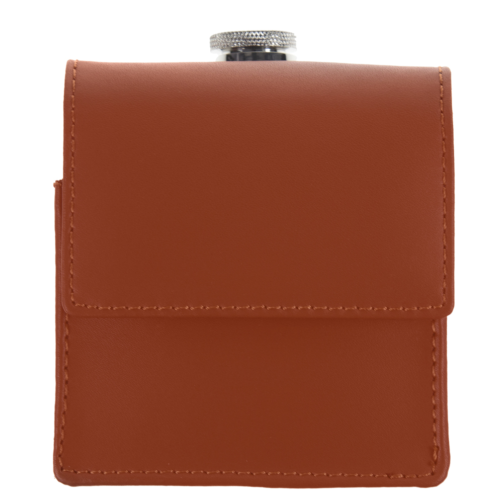 Piersiówka 180 ml, skórzane etui / Brązowy