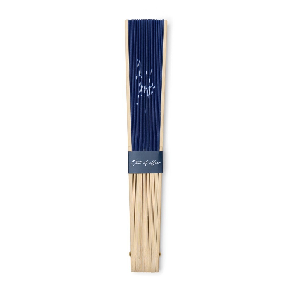 Wachlarz, wykonany z bambusa i poliestru, posiada nadruk „Out of office”