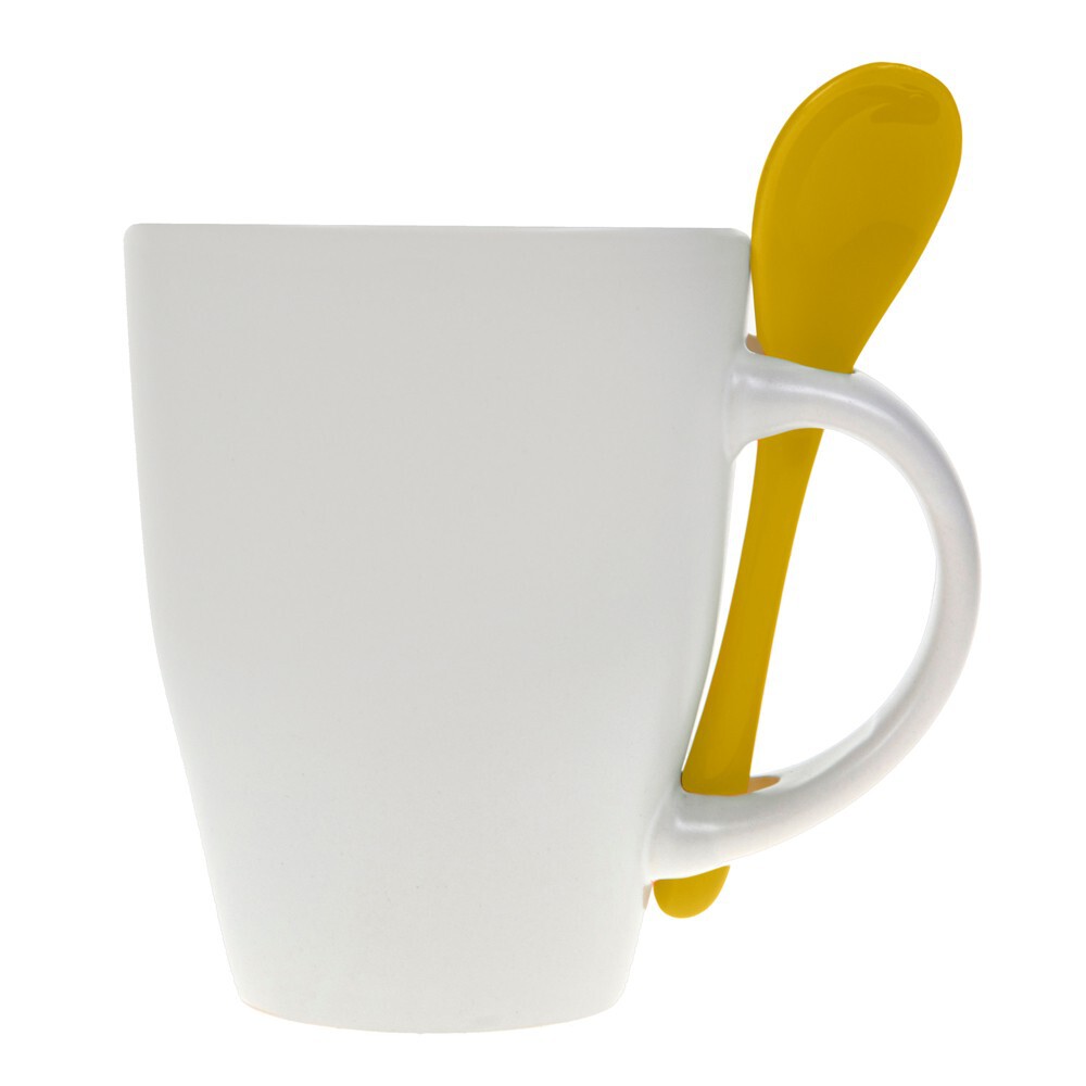 Kubek ceramiczny 300 ml z łyżeczką / żółty