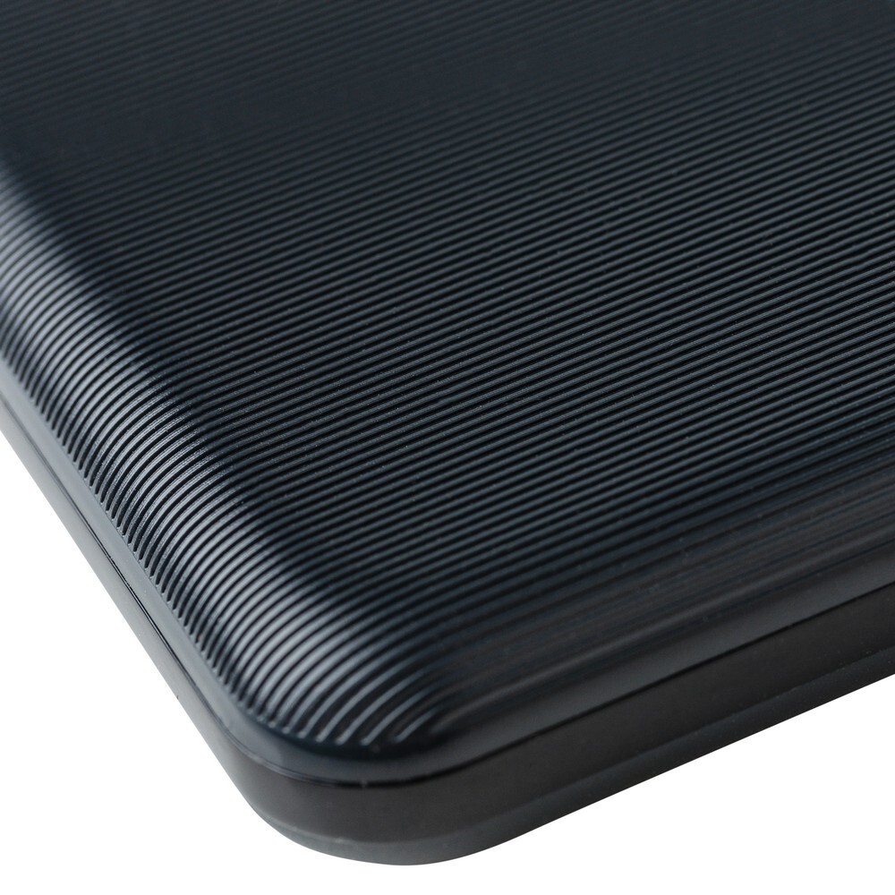 Power bank o mocy 22,5W i pojemności 10000 mAh z baterią litowo-jonową, wejście i wyjście typu C, wejście typu A, etykieta informacyjna z tyłu, ikona RABS na produkcie, posiada zabezpieczenie przed przegrzaniem, zwarciem, przepięciem i przeciążeniem, zapakowany pojedynczo w brązowe kartonowe pudełko, produkt wykonany z ABS z recyklingu