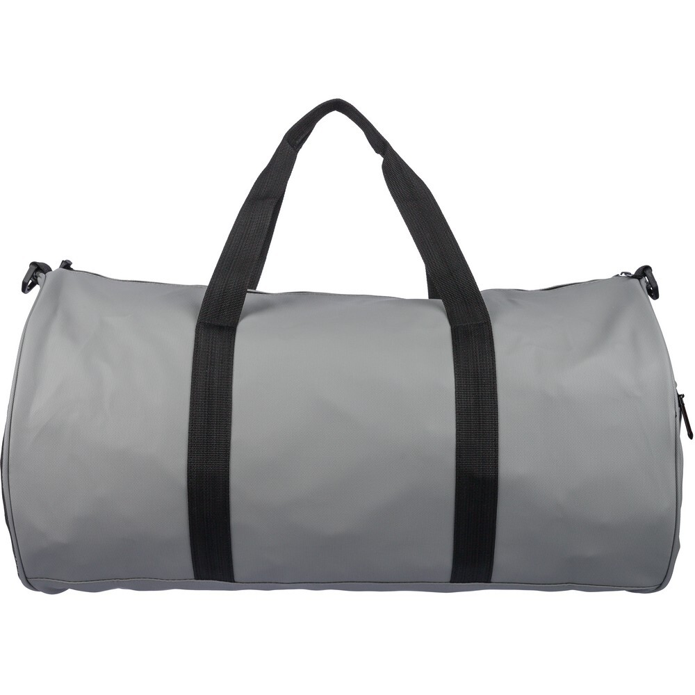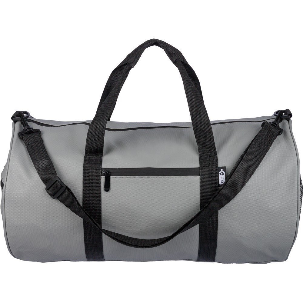 Torba sportowa, podróżna o pojemności 40 litrów, podszewka z poliestru 210D, powłoka wodoodporna, główna kieszeń zapinana na zamek, mała przednia kieszeń zapinana na zamek, kieszeń boczna zapinana na zamek, kieszeń boczna z siatką, dwa uchwyty do noszenia, posiada długi pasek umożliwiający noszenie na ramieniu, ikona RPET na metce, produkt wykonany z RPET 600D i PU