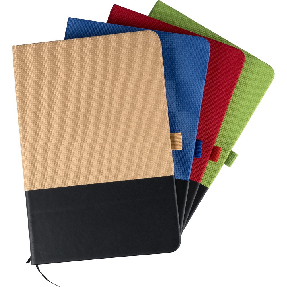 Notatnik ok. A5, posiada 80 kartek w linie, 70 g/m², produkt wykonany z RPET i PU