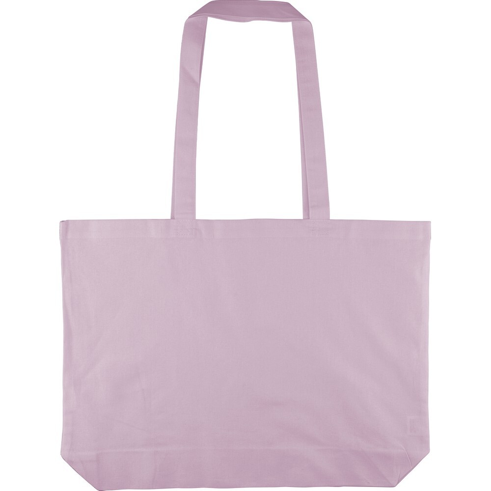 Torba na zakupy 140 g/m² o pojemności 16 litrów, posiada długie uchwyty umożliwiające noszenie na ramieniu (2,5 x 70 cm), ikona OEKO-TEX na metce, produkt wykonany z farbowanej bawełny