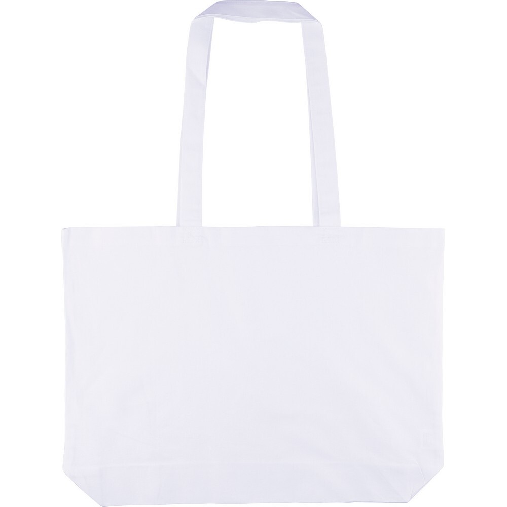 Torba na zakupy 140 g/m² o pojemności 16 litrów, posiada długie uchwyty umożliwiające noszenie na ramieniu (2,5 x 70 cm), ikona OEKO-TEX na metce, produkt wykonany z farbowanej bawełny
