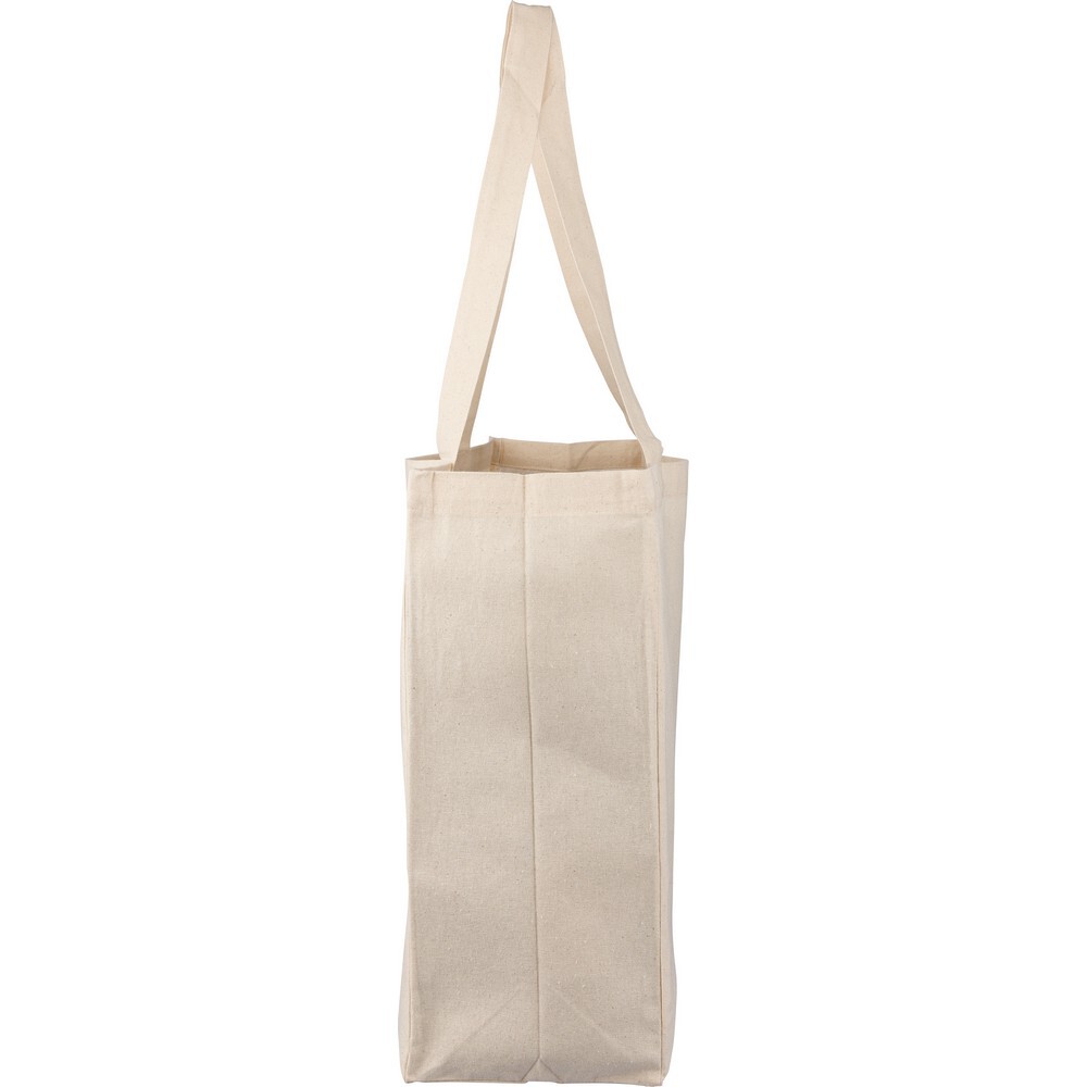 Torba na zakupy 180 g/m² o pojemności 21 litrów, posiada długie uchwyty umożliwiające noszenie na ramieniu (3 x 67 cm), ikona OEKO-TEX na metce, produkt wykonany z bawełny naturalnej