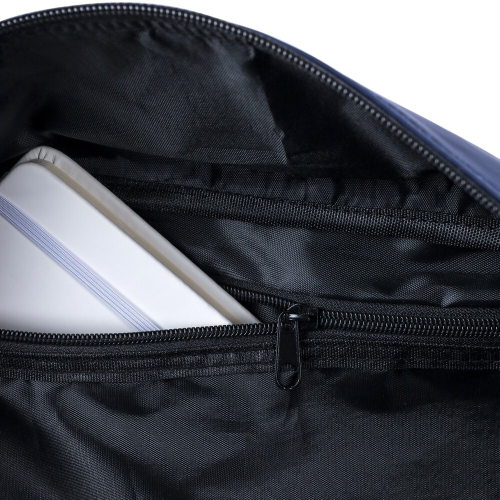 Torba sportowa, podróżna o pojemności 35 litrów, długie uchwyty do noszenia na ramieniu (2,5 × 108 cm) z zapięciem na rzep, regulowany pasek na ramię (3,9 × 130 cm), mała przednia kieszeń zapinana na zamek, duża główna komora zapinana na zamek, ikona recyklingu na metce, produkt wykonany z PU z recyklingu z podszewką z recyklingowego poliestru 210D