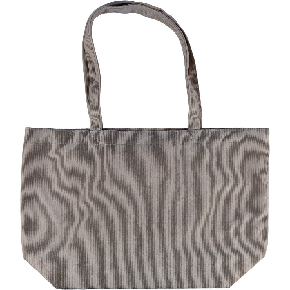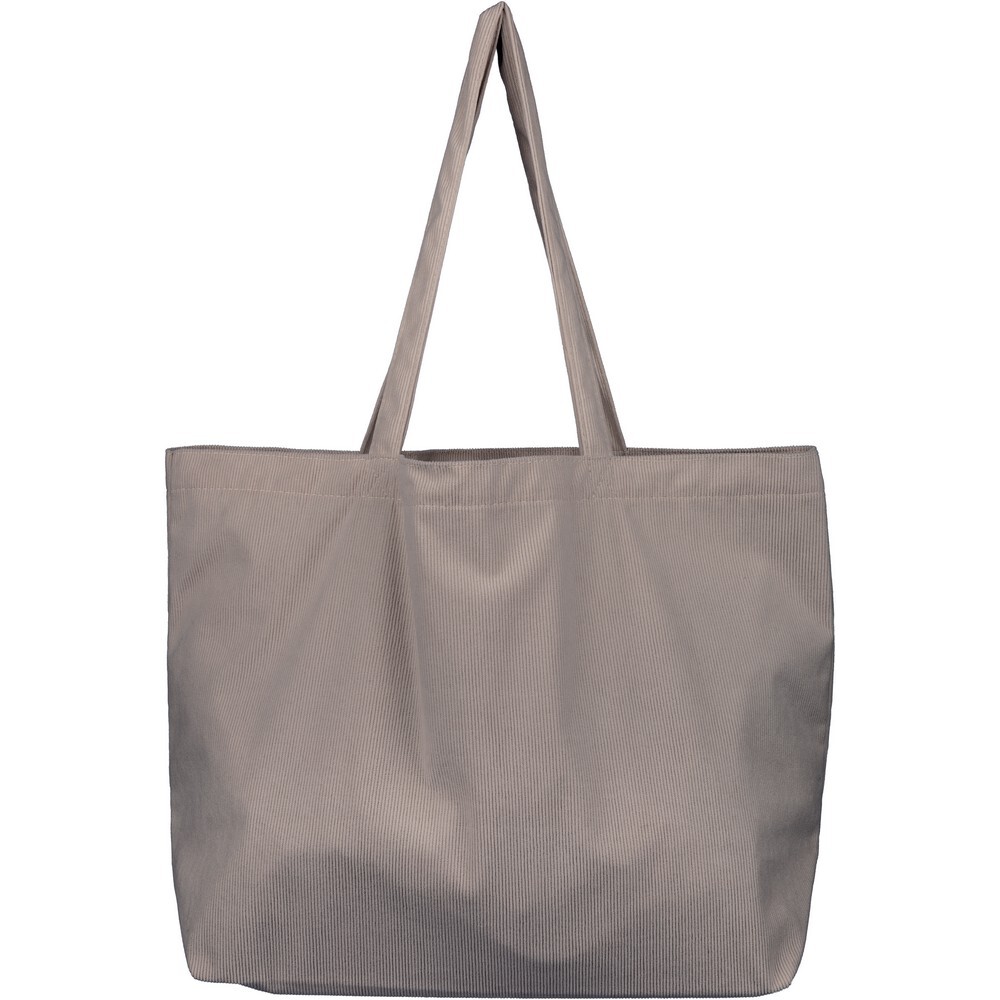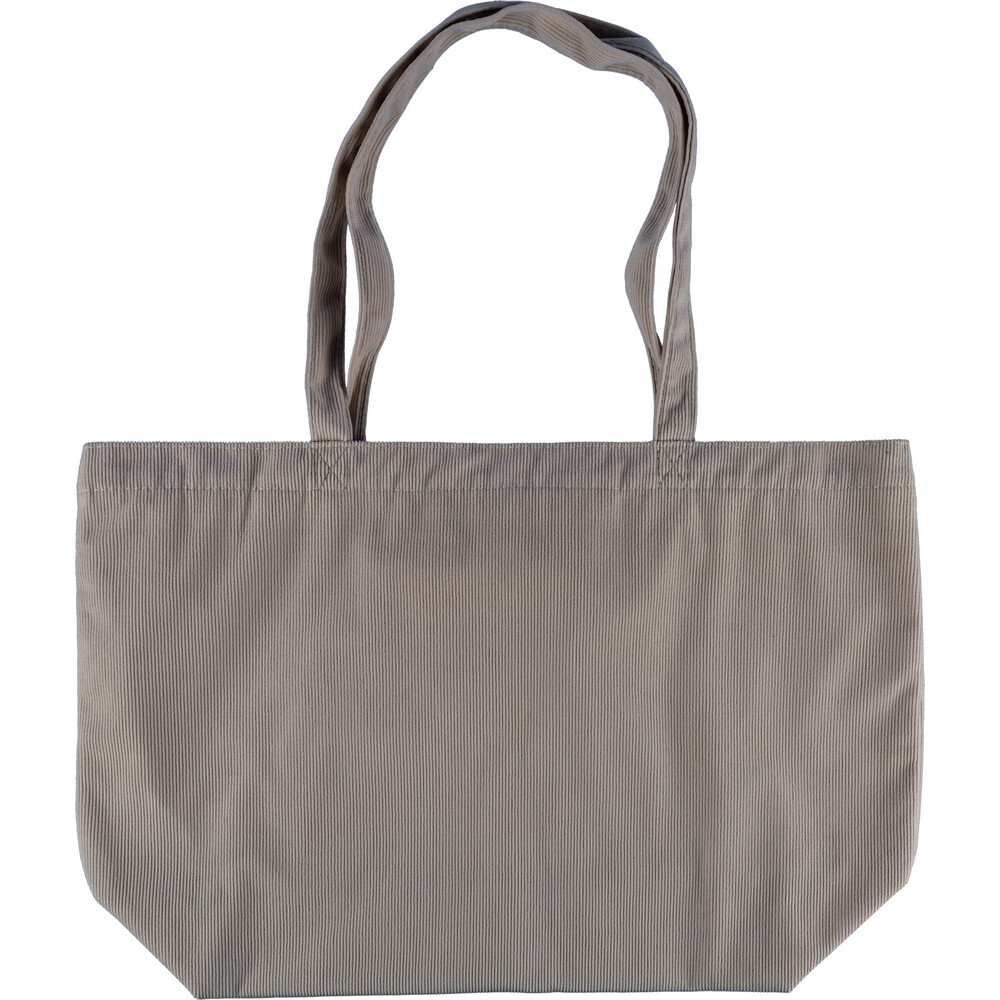 Torba na zakupy o pojemności ok. 25 litrów, posiada długie uchwyty umożliwiające noszenie na ramieniu (2,5 x 60 cm), podszewka z poliestru 210D, niewielka kieszeń wewnętrzna (10 x 10 cm), produkt wykonany ze sztruksu i poliestru