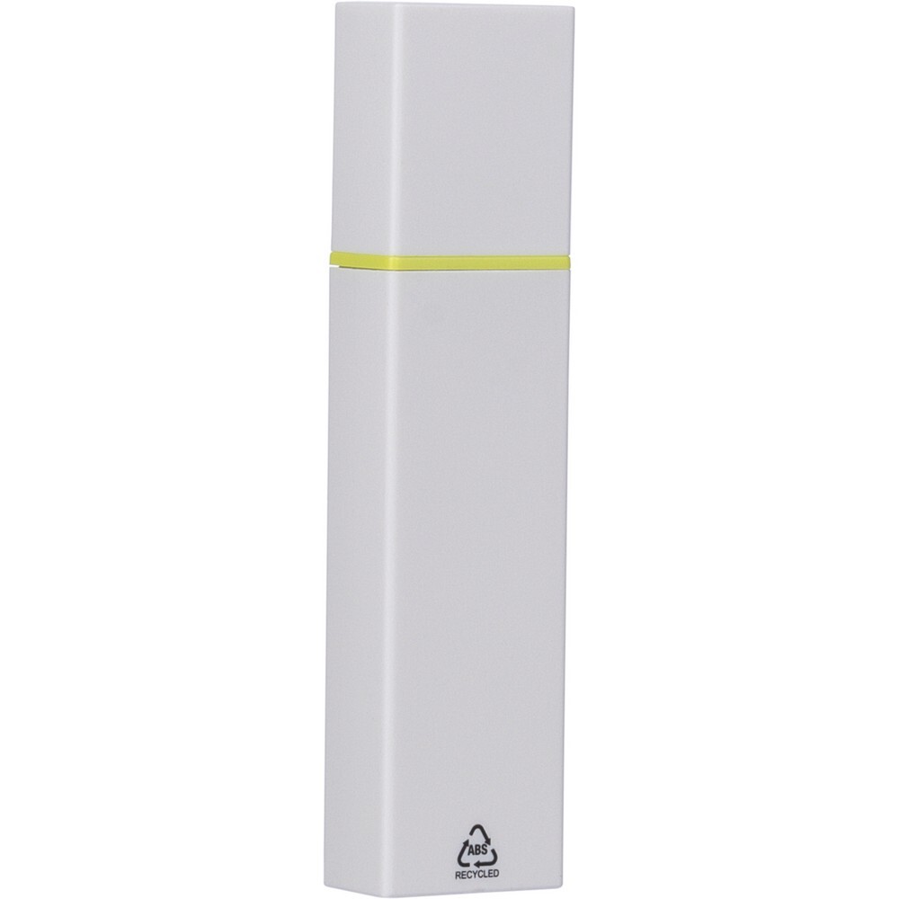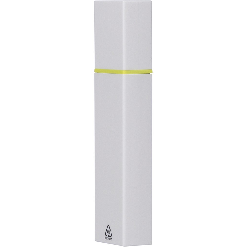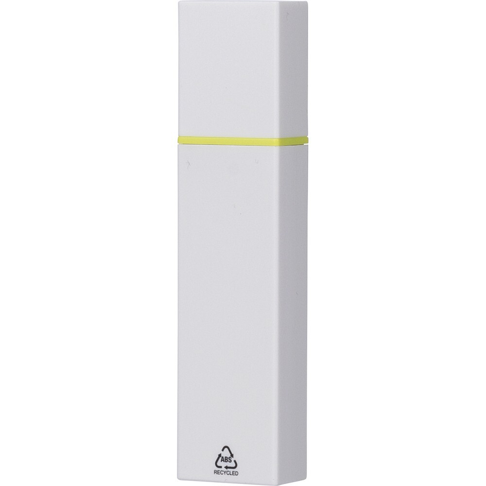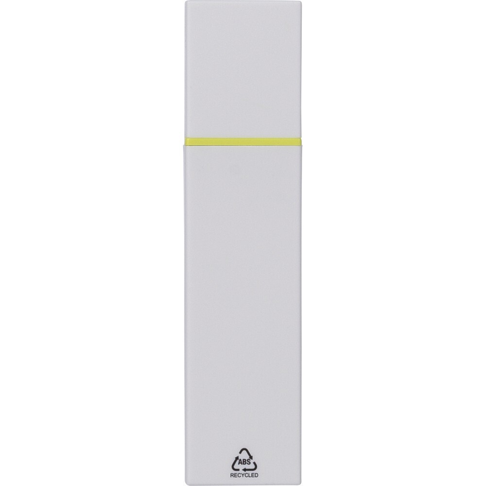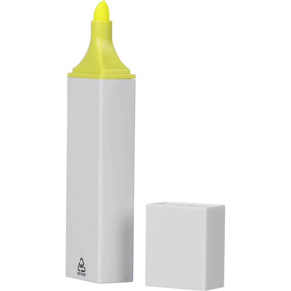 Zakreślacz, biała obudowa, kolorowy detal, zawiera ikonę ABS na produkcie, produkt wykonany z ABS z recyklingu
