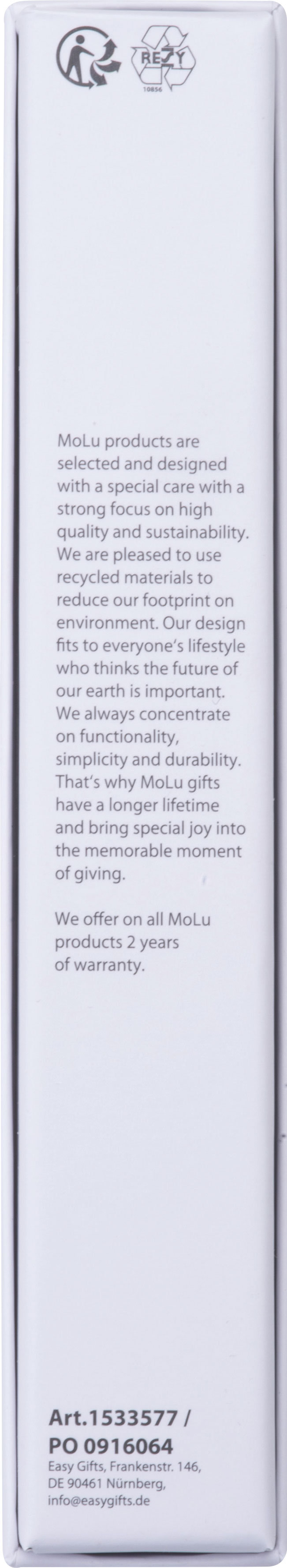 Pióro kulkowe MoLu – odważny design w połączeniu z kulturą pisania. Elegancki, sześciokątny korpus z logo MoLu na górze. Wyposażone w sprawdzony system Parker – duża pojemność, niebieski atrament i wymienny wkład. Jego unikalny kształt idealnie leży w dłoni – stylowy, funkcjonalny, niepowtarzalny.