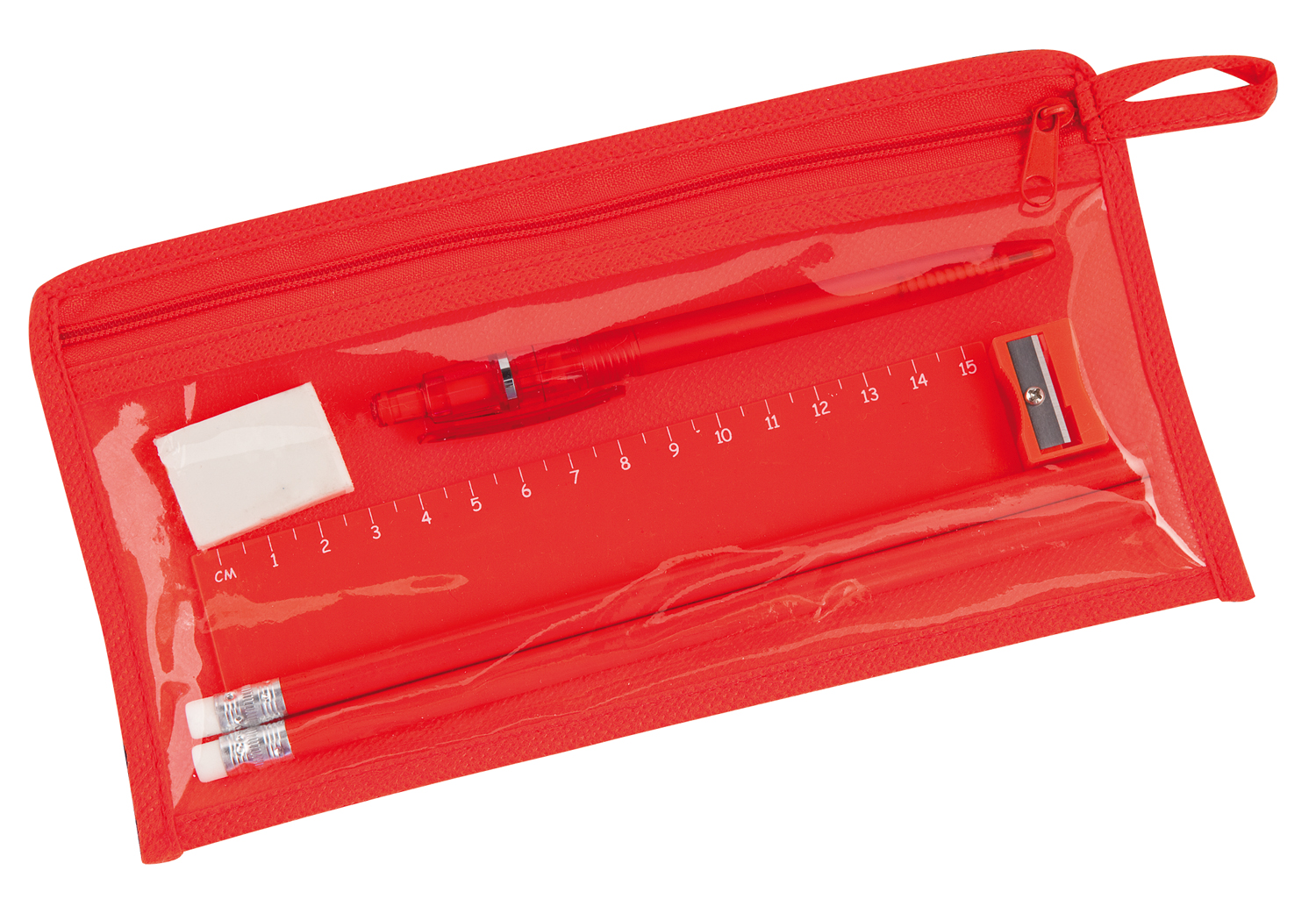 Piórnik na zamek błyskawiczny, 2 ołówki, linijka, gumka, temperówka i długopis
