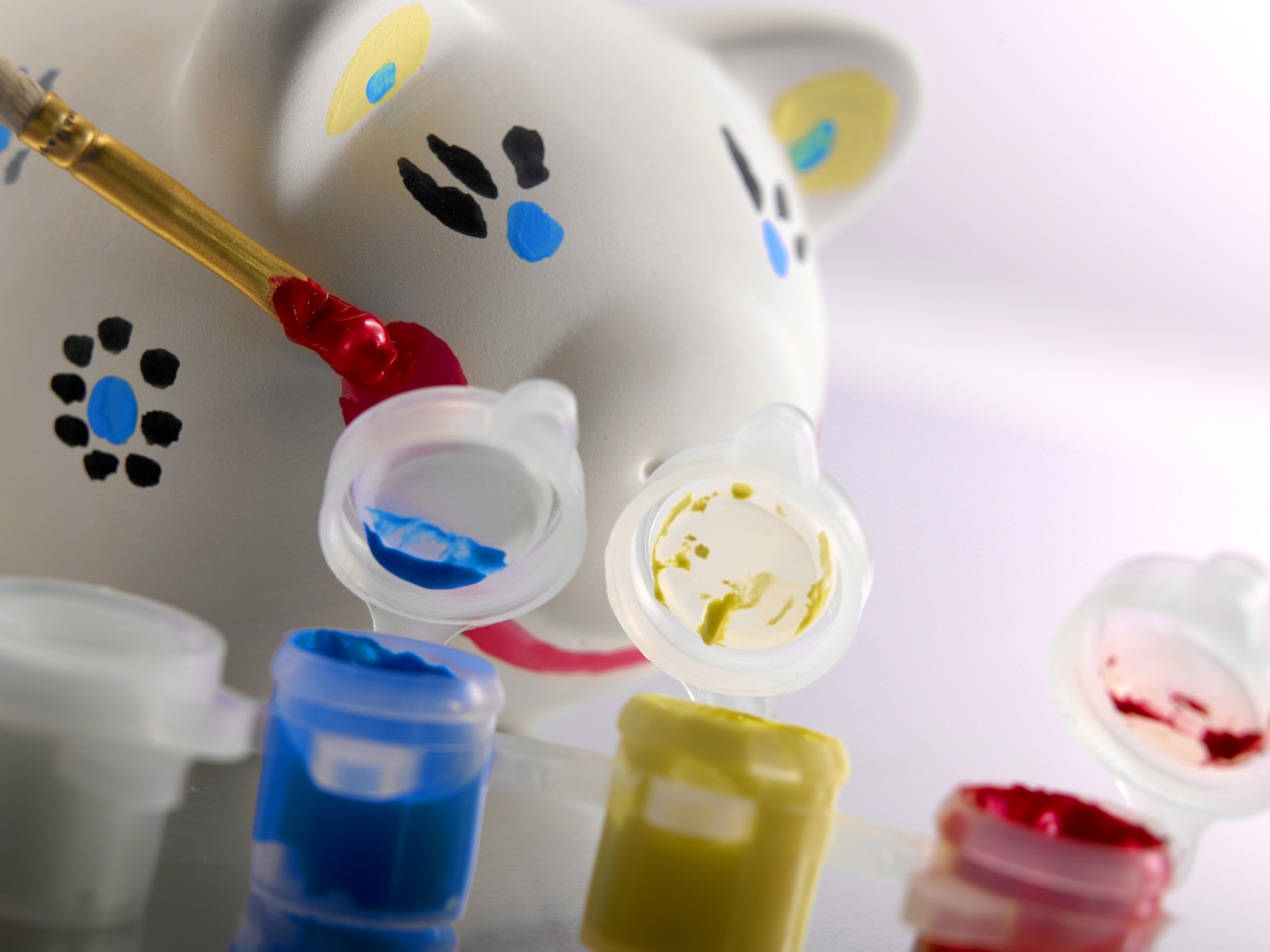 Skarbonka "świnka" do malowania, farbki i pędzelek / Biały V6453-02