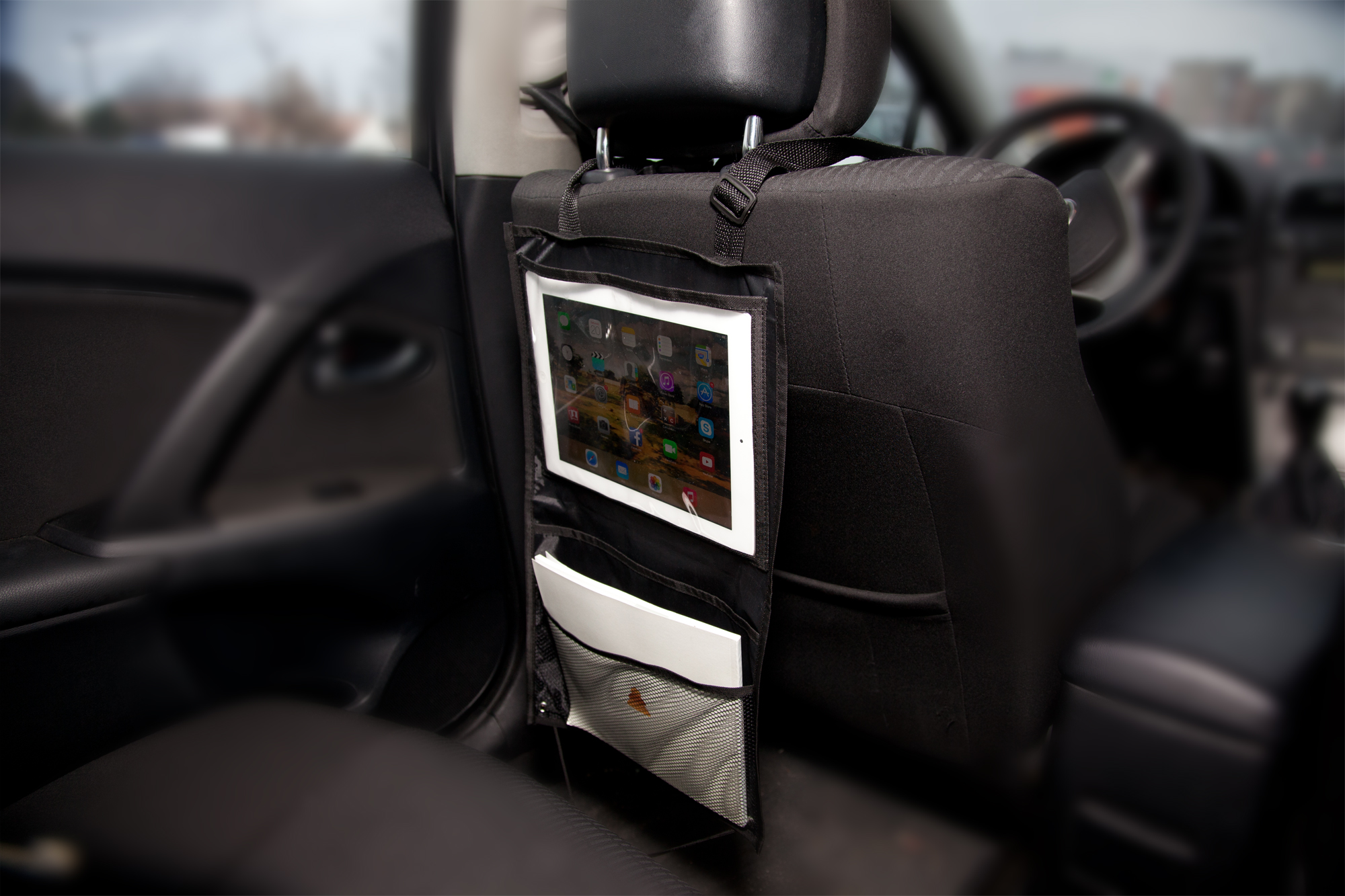 Uniwersalne etui na tablet, organizer do samochodu, max. rozmiar 10", 1 duża kieszeń, 1 siateczkowa i 1 z PVC
