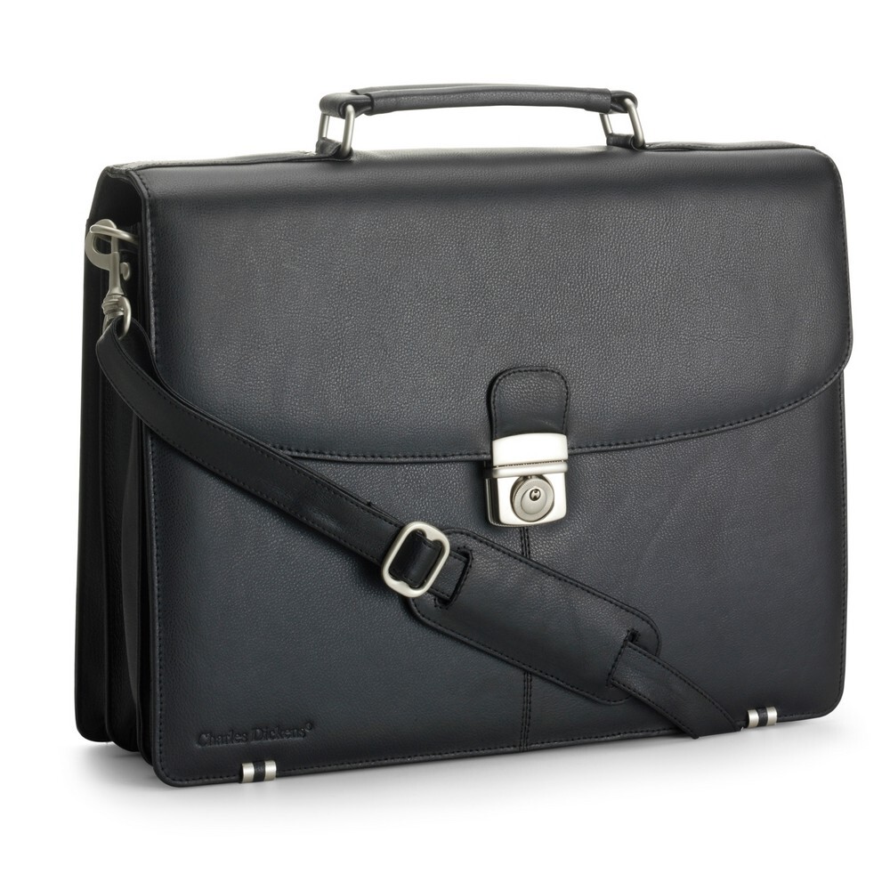 Skórzana teczka Charles Dickens, 3 wewnętrzne kieszenie i regulowany pasek na ramię, w ozdobnym opakowaniu