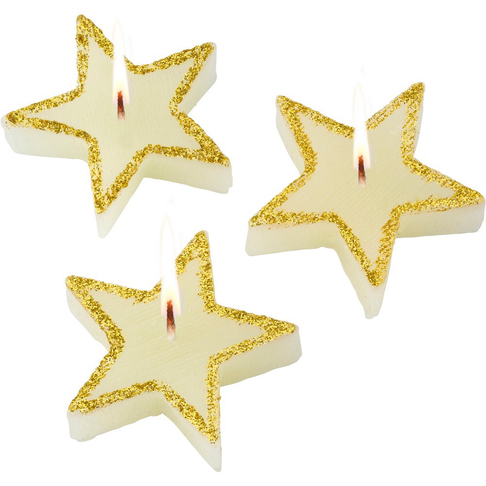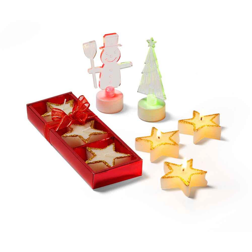 Zestaw trzech świeczek w kształcie gwiazdy w ozdobnym pudełku z czerwoną wstążką