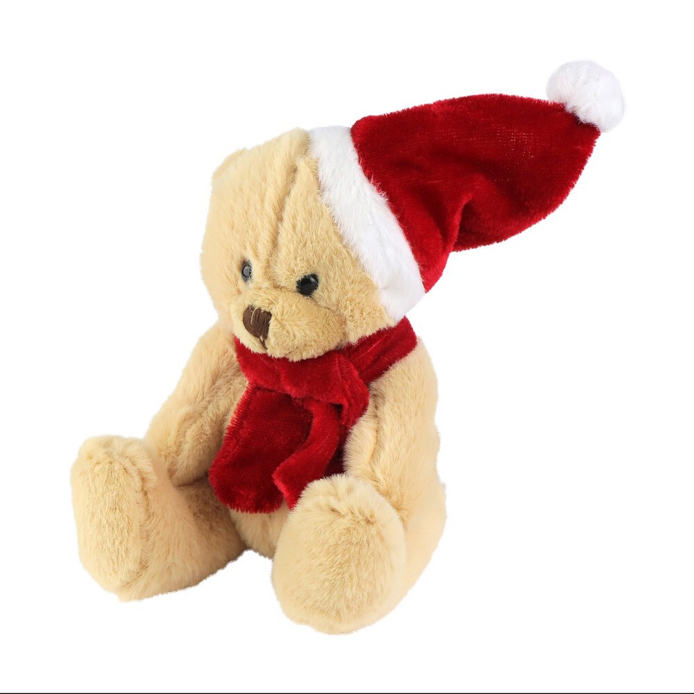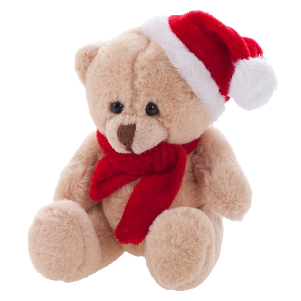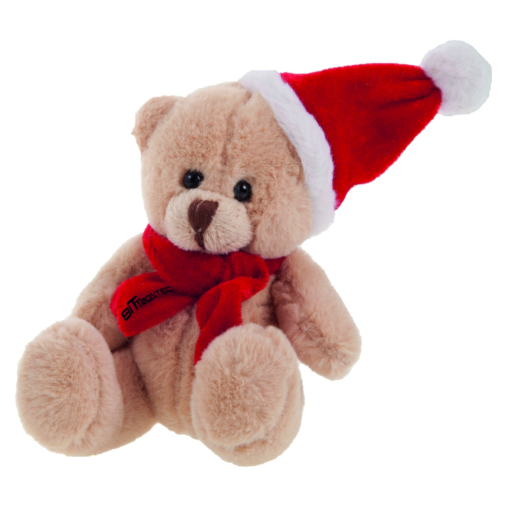Miodowy miś świąteczny w szaliku i czapce pod nadruk