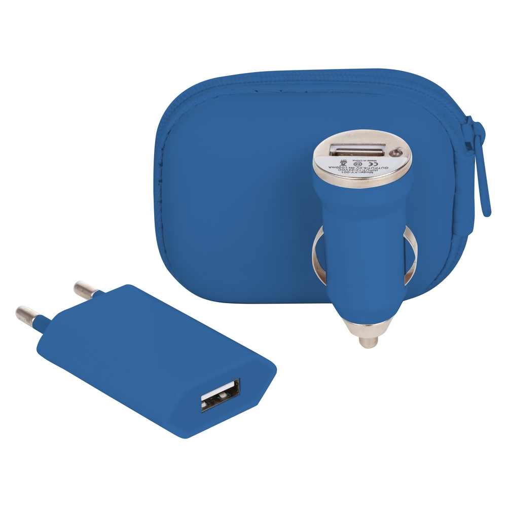 Zestaw do ładowania, adapter sieciowy i ładowarka samochodowa / Granatowy