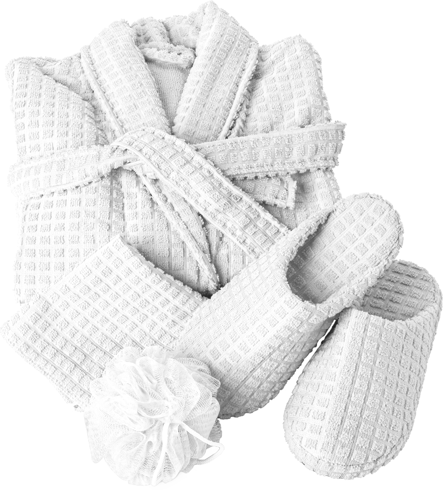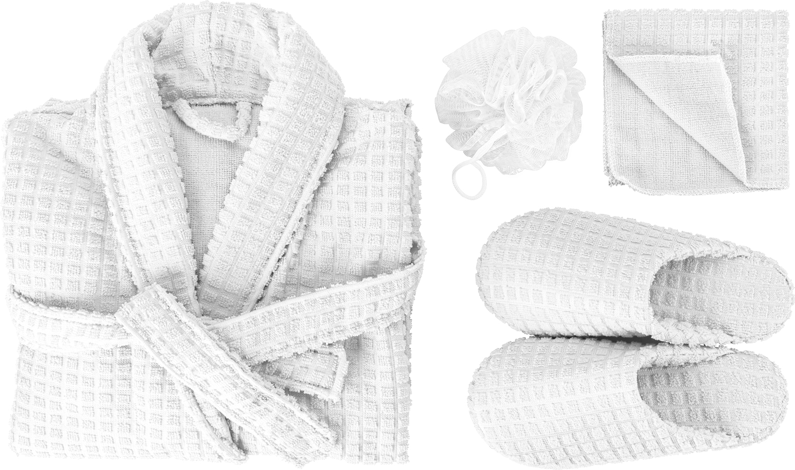 Zestaw kąpielowy, szlafrok, myjka i kapcie / Biały