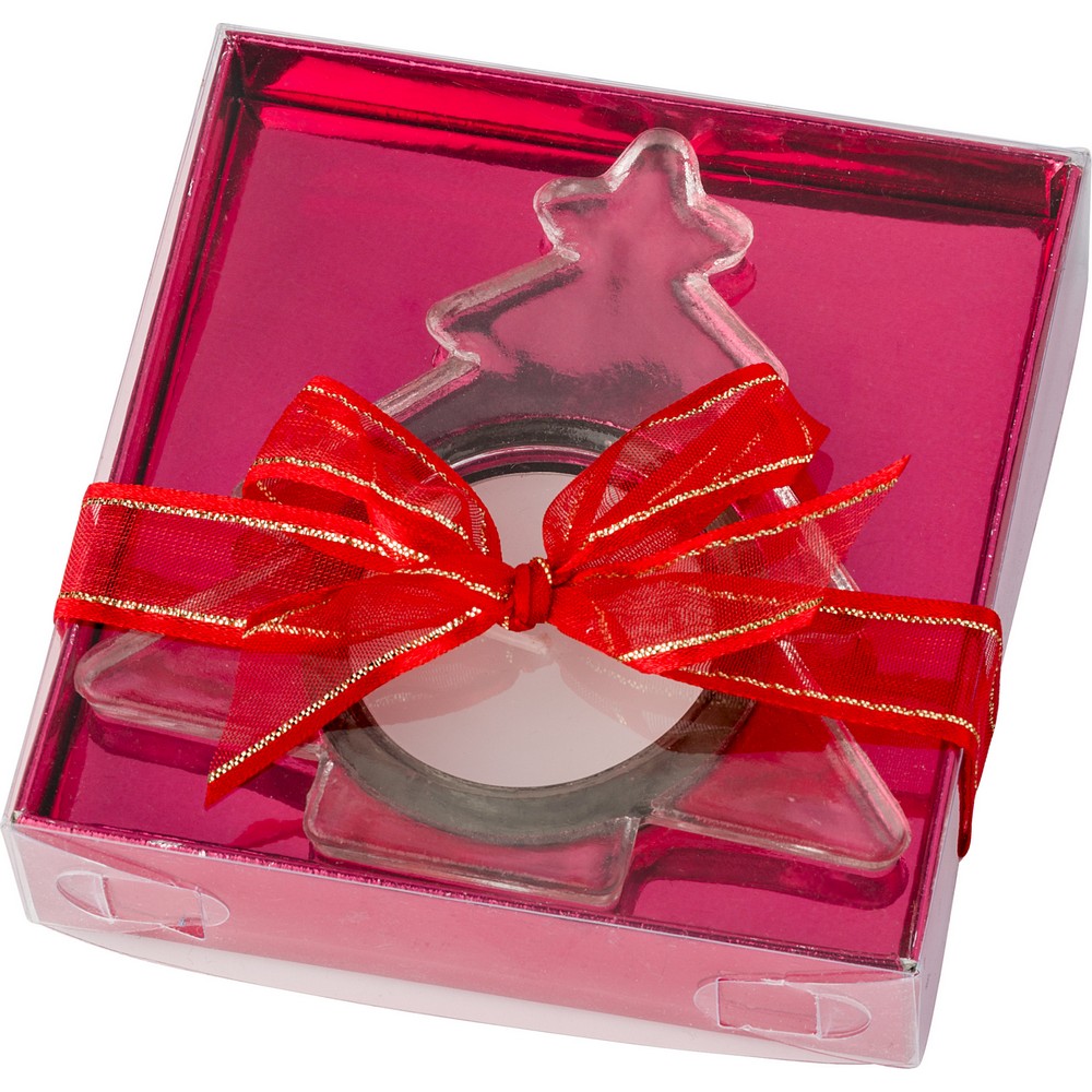 Świecznik "choinka" z wkładem tealight, w czerwonym ozdobnym pudełku ze wstążką