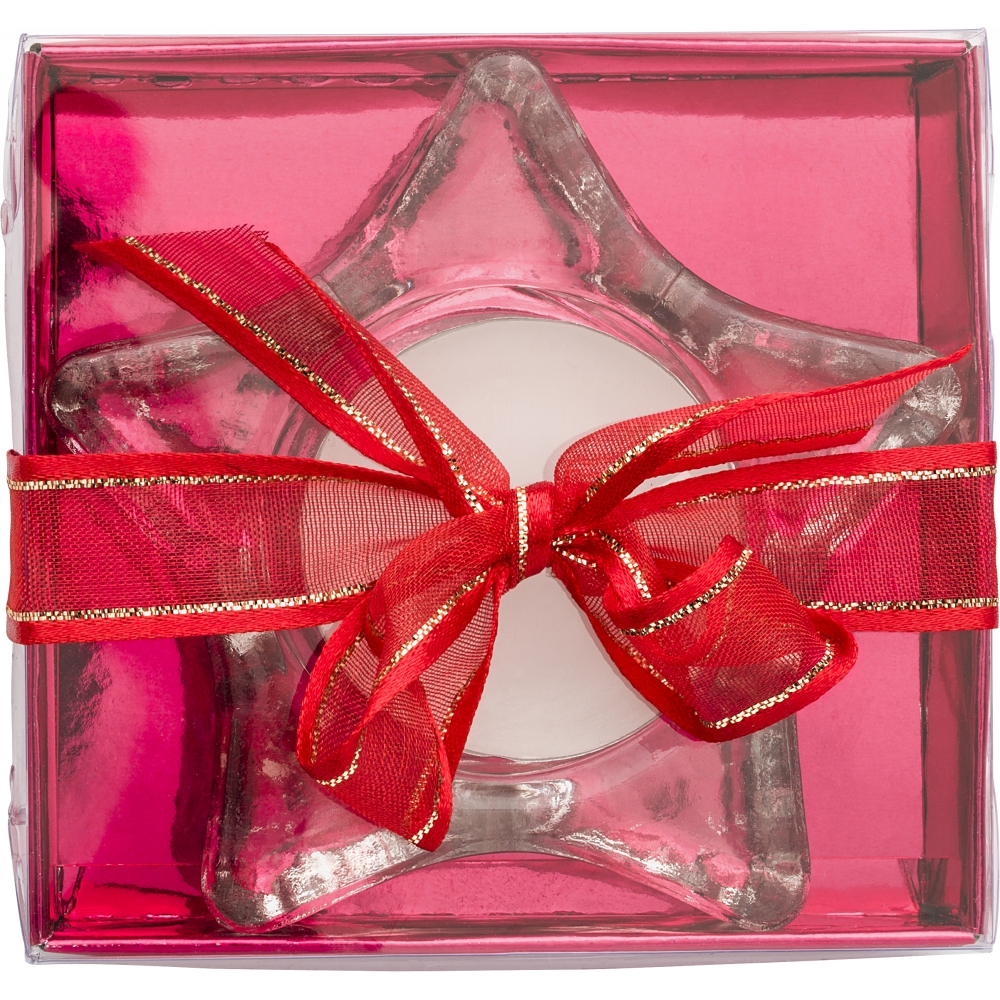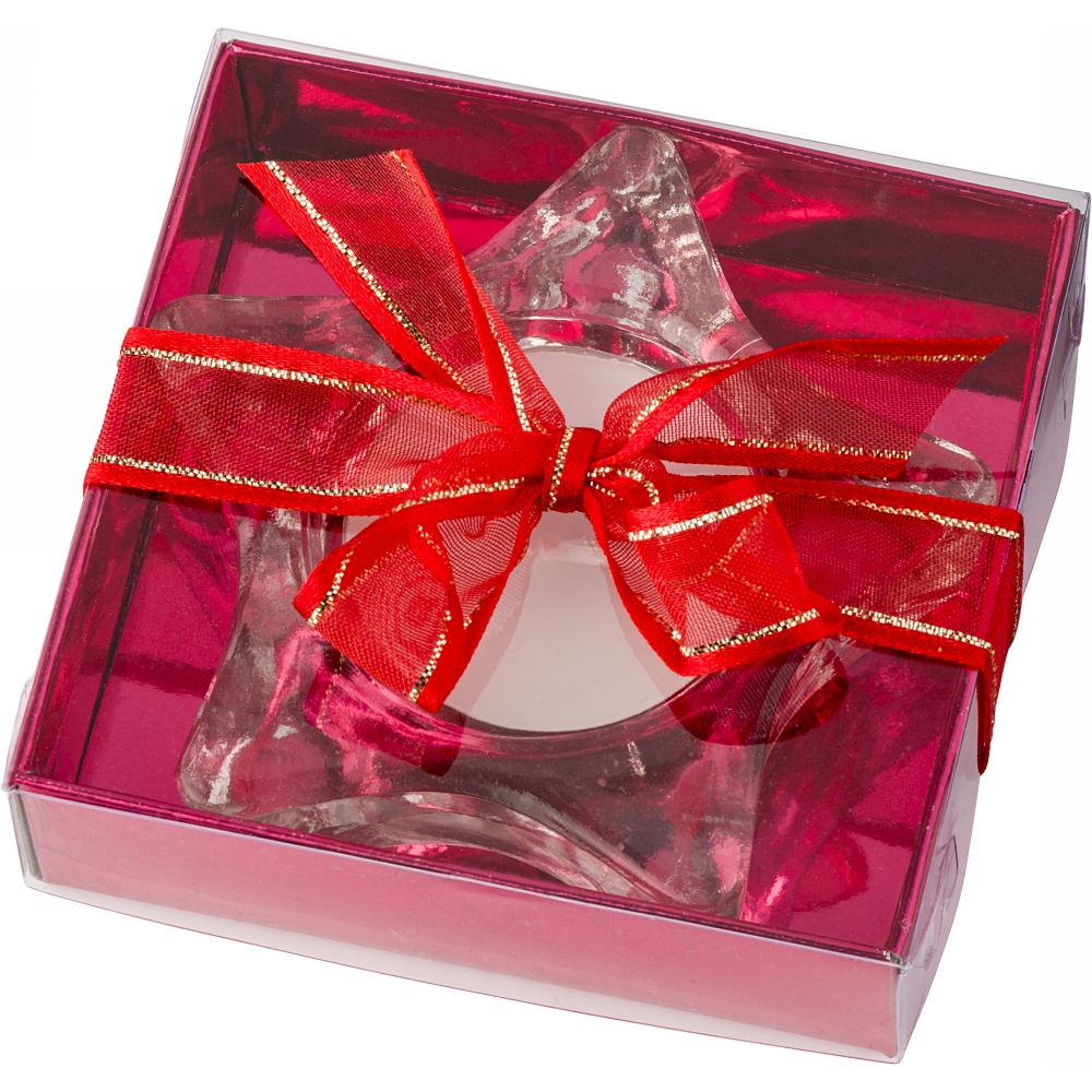 Świecznik "gwiazda" z wkładem tealight, w czerwonym ozdobnym pudełku ze wstążką