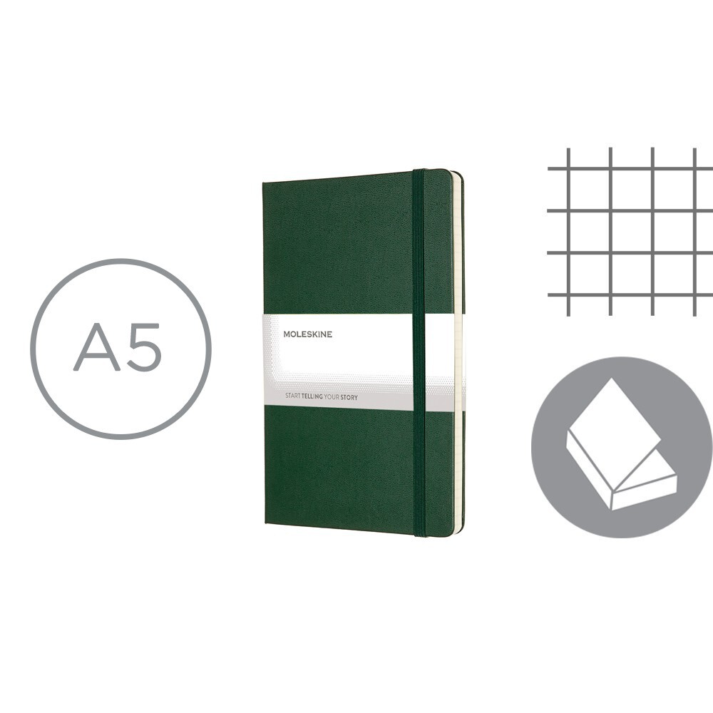 Notatnik duży (large) MOLESKINE, twarda okładka, w kratkę (240 str.), kieszeń wewnętrzna, zakładka i elastyczna opaska do zamykania