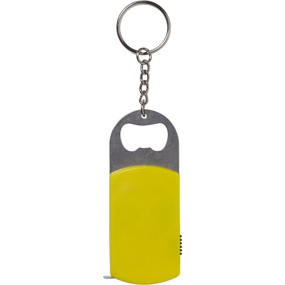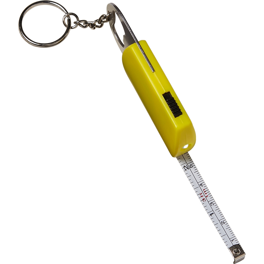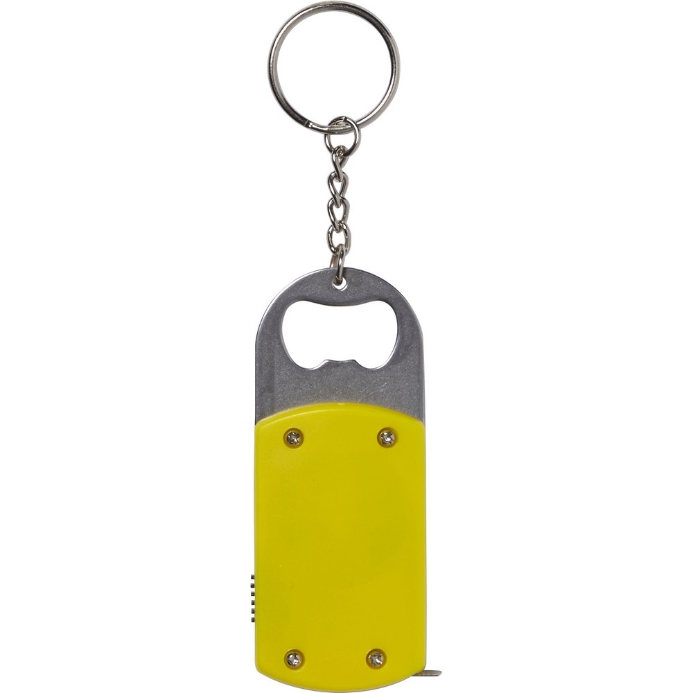 Brelok do kluczy, lampka LED, otwieracz do butelek, miara 1m / żółty