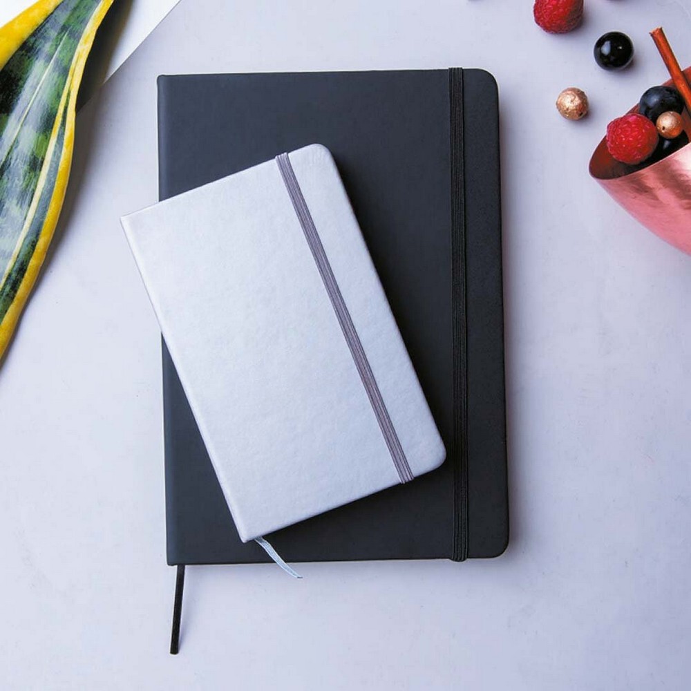 Notatnik (ok. 96 pustych kartek), tasiemka zakładkowa i elastyczna opaska do zamykania