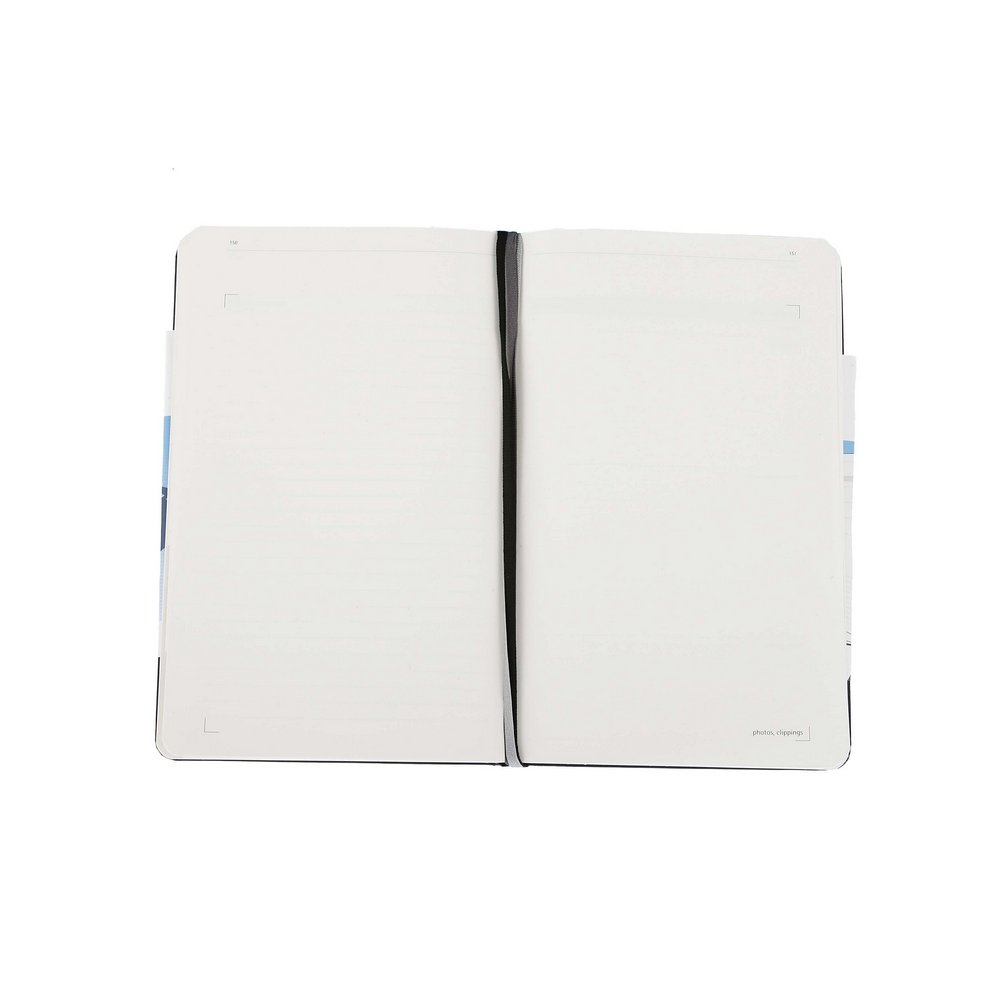 Specjalny notatnik Moleskine Travel Journal dla entuzjastów podróży (240 stron), naklejki do personalizacji, elastyczna opaska, 3 tasiemki zakładkowe