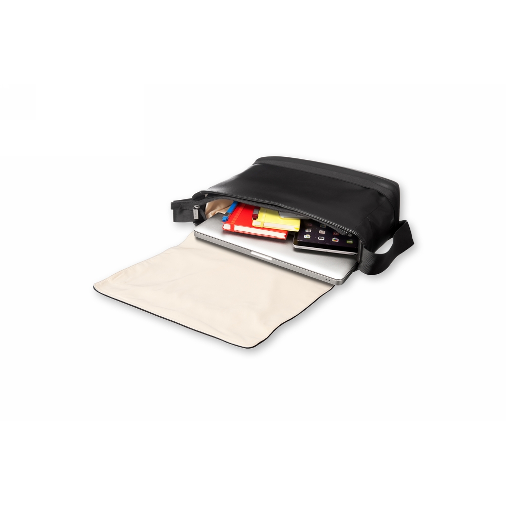 Torba na laptopa Moleskine, 1 kieszeń wewnętrzna na laptopa 15", 1 kieszeń wewnętrzna na zamek, opaska elastyczna do zamykania, regulowany pasek na ramię z ukrytymi klamrami