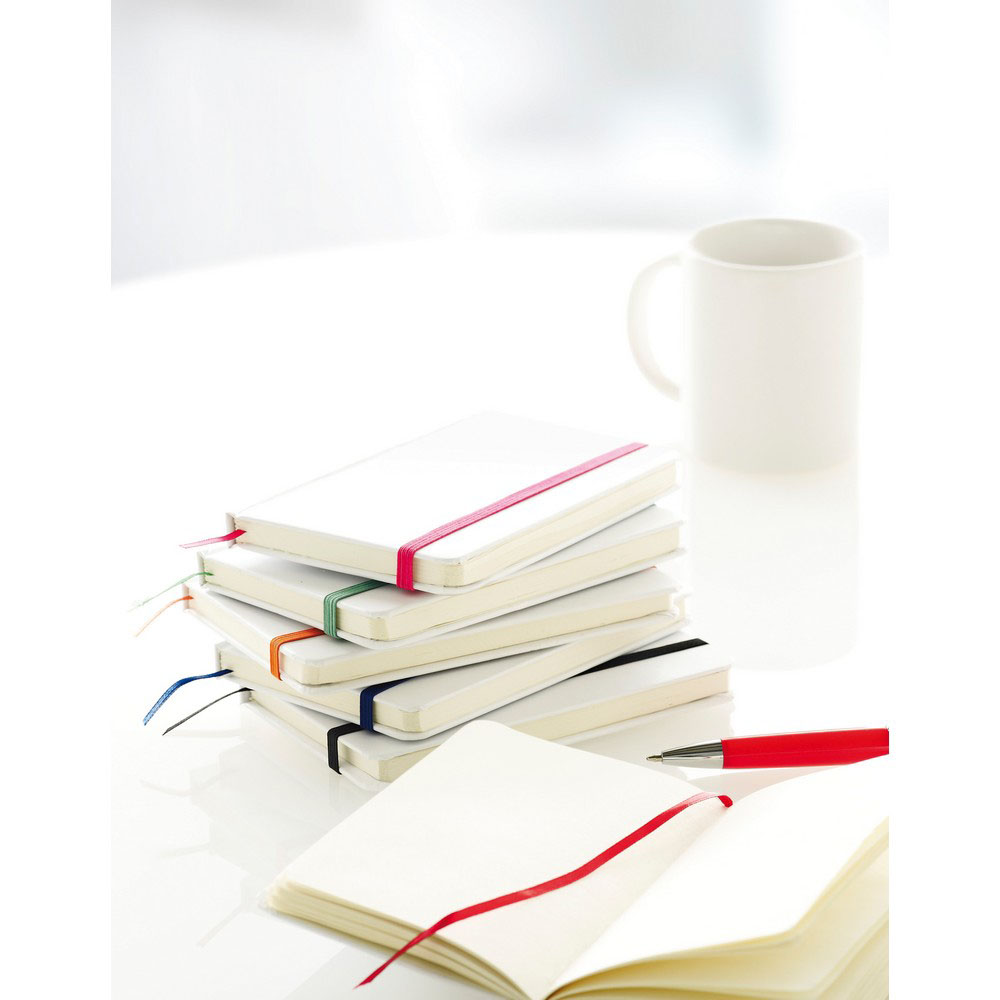Notatnik (80 pustych kartek), tasiemka zakładkowa, elastyczna opaska do zamykania