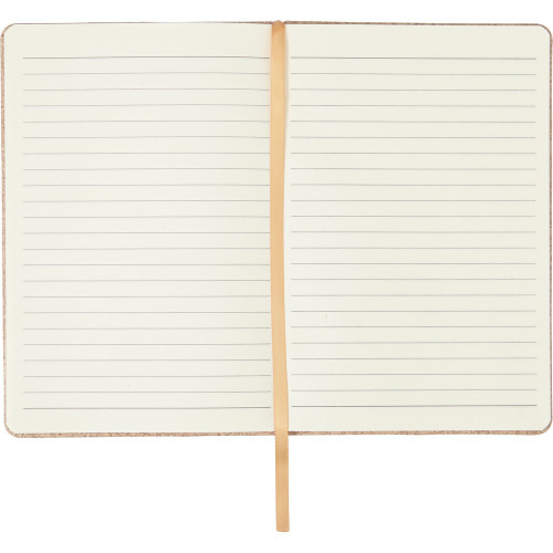 Notatnik A5 (48 kartek w linie), okładka PU z korkowym wzorem, elastyczna opaska do zamykania oraz zakładka