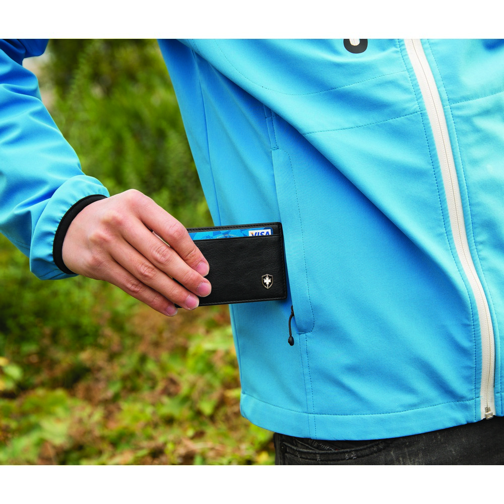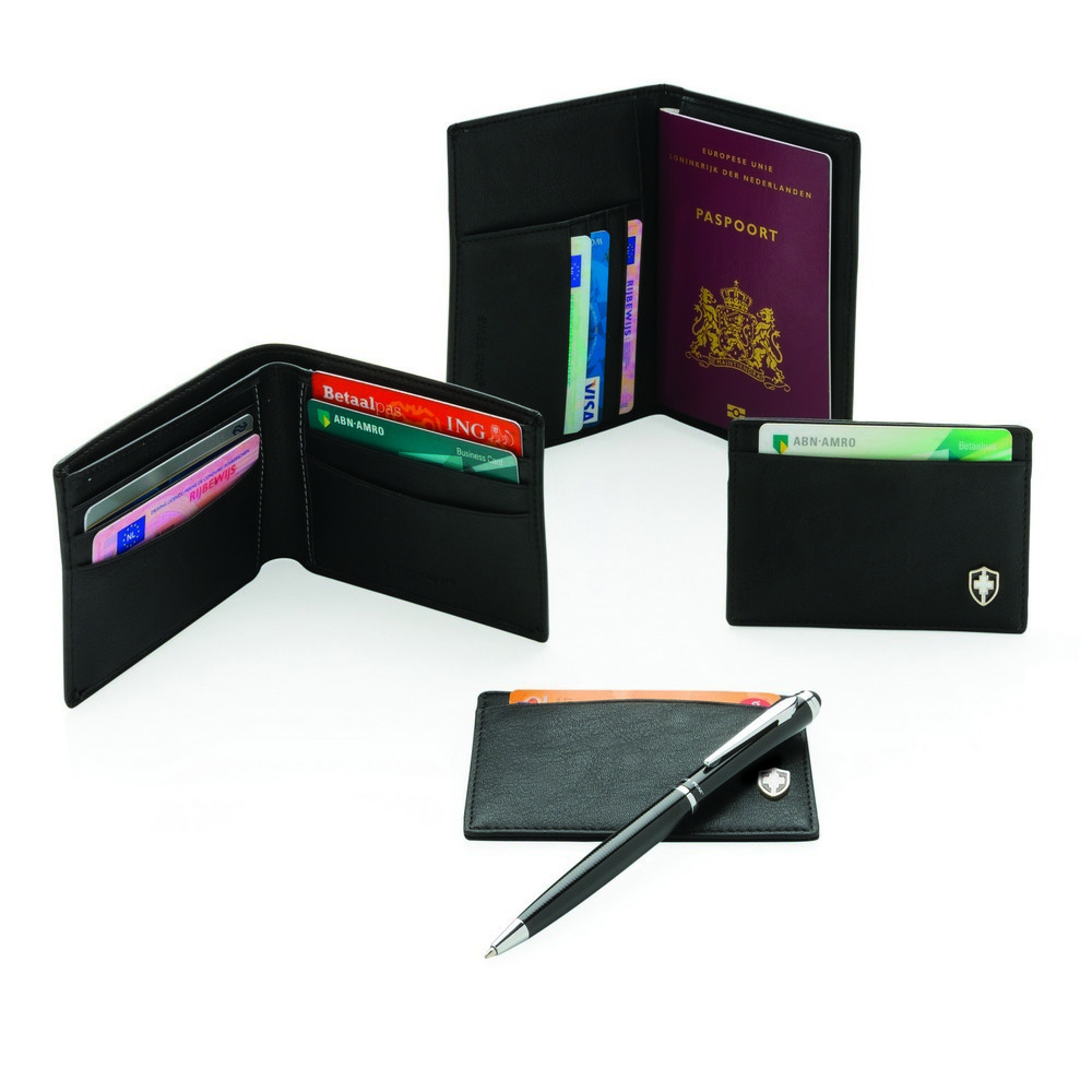 Etui na karty kredytowe Swiss Peak z ochroną przed skanowaniem kart RFID, 3 przegródki (max. 8 kart), wewnątrz przegroda na pieniądze