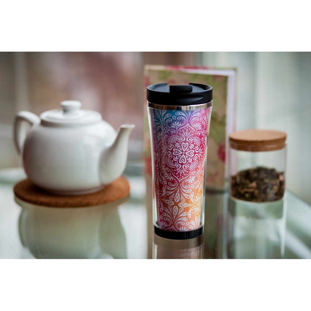 Kubek podróżny 400 ml, obudowa z możliwością włożenia kartki z nadrukiem full colour