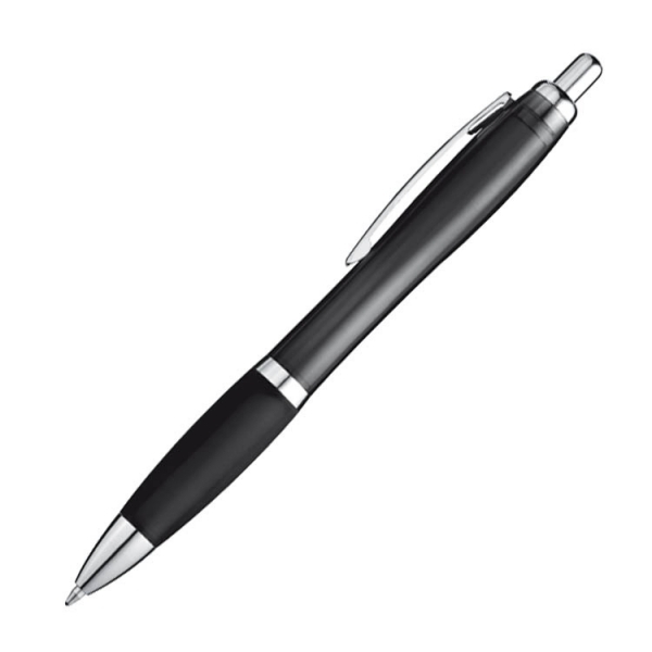 Ten długopis to sprawdzony wybór dla osób poszukujących funkcjonalnego i niedrogiego gadżetu reklamowego. Wykonany z plastiku, posiada antypoślizgową gumkę oraz błyszczące elementy, które dodają mu klasycznego wyglądu. Ten model długopisu ze średnicą korpusu ok. 1,3 cm jest idealny do umieszczenia logo firmy. Dodatkowo, wyposażony jest w standardowy system typu klik, który jest łatwy w obsłudze i wygodny w użytkowaniu. Wkład w kolorze niebieskim jest pojemny, co zapewnia długotrwałe pisanie bez potrzeby częstej wymiany wkładu. Chromowane wykończenia długopisu dodają mu charakteru, co sprawia, że dobrze prezentuje się zarówno w biurze, jak i jako upominek dla gości na konferencji i nie tylko. To solidny wybór dla każdego, kto ceni sprawdzone rozwiązania i prostotę.