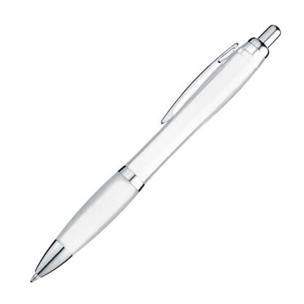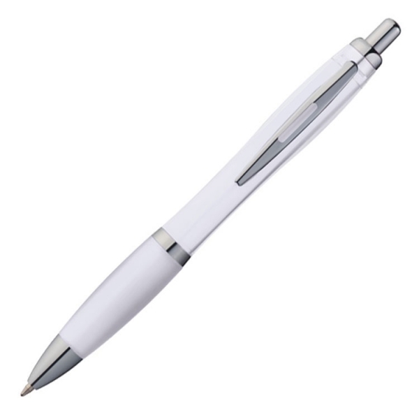 Ten długopis to sprawdzony wybór dla osób poszukujących funkcjonalnego i niedrogiego gadżetu reklamowego. Wykonany z plastiku, posiada antypoślizgową gumkę oraz błyszczące elementy, które dodają mu klasycznego wyglądu. Ten model długopisu ze średnicą korpusu ok. 1,3 cm jest idealny do umieszczenia logo firmy. Dodatkowo, wyposażony jest w standardowy system typu klik, który jest łatwy w obsłudze i wygodny w użytkowaniu. Wkład w kolorze niebieskim jest pojemny, co zapewnia długotrwałe pisanie bez potrzeby częstej wymiany wkładu. Chromowane wykończenia długopisu dodają mu charakteru, co sprawia, że dobrze prezentuje się zarówno w biurze, jak i jako upominek dla gości na konferencji i nie tylko. To solidny wybór dla każdego, kto ceni sprawdzone rozwiązania i prostotę.