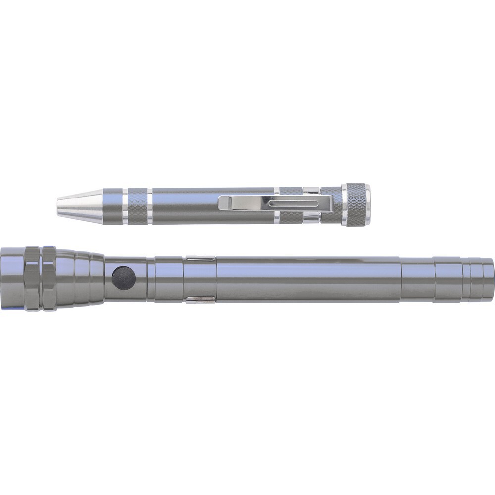 Zestaw narzędzi, śrubokręt, 8 końcówek, teleskopowa latarka 3 LED / Szary