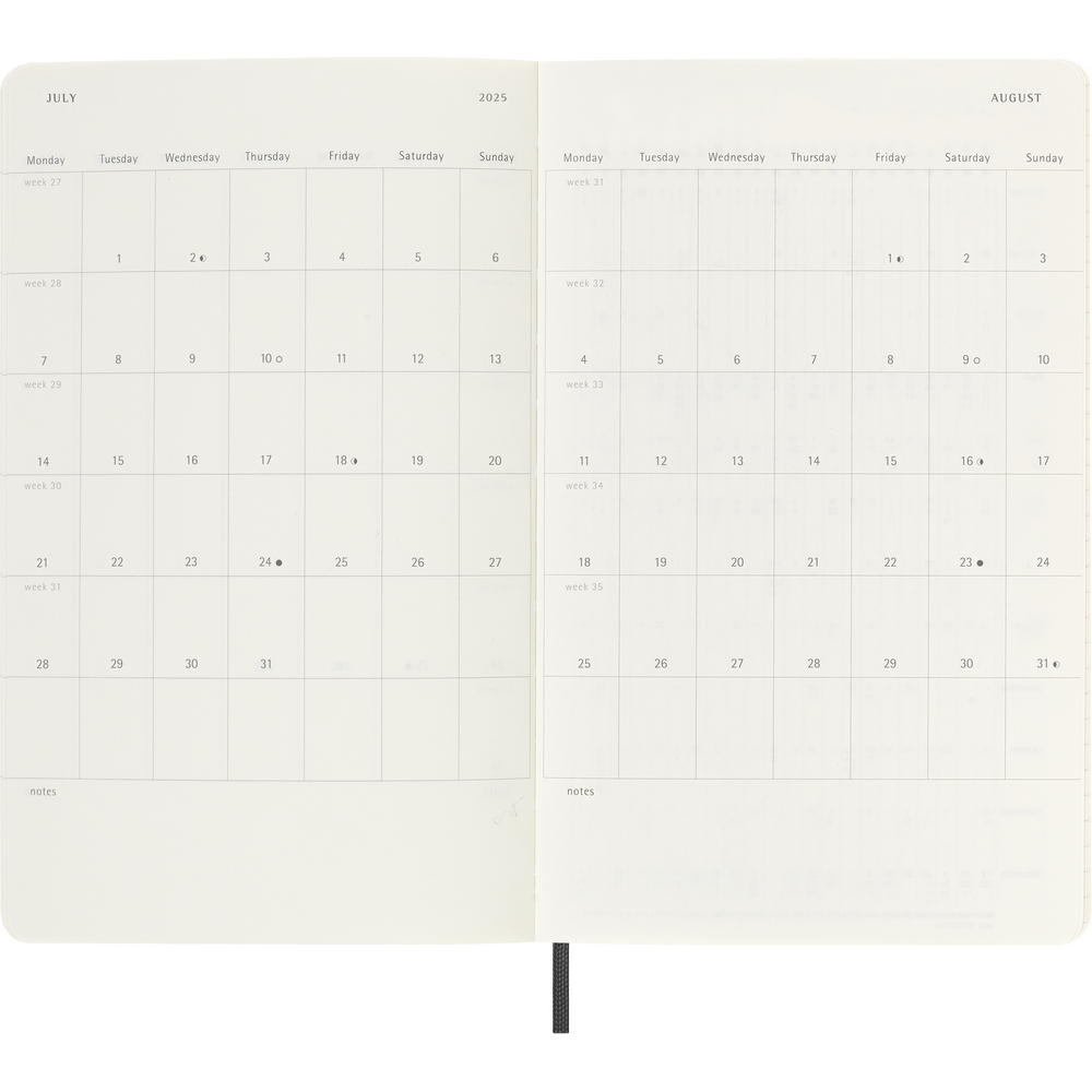 Kalendarz duży (large) MOLESKINE z notatnikiem, miękka okładka, tygodniowy (144 str.), zakładka i elastyczna opaska do zamykania