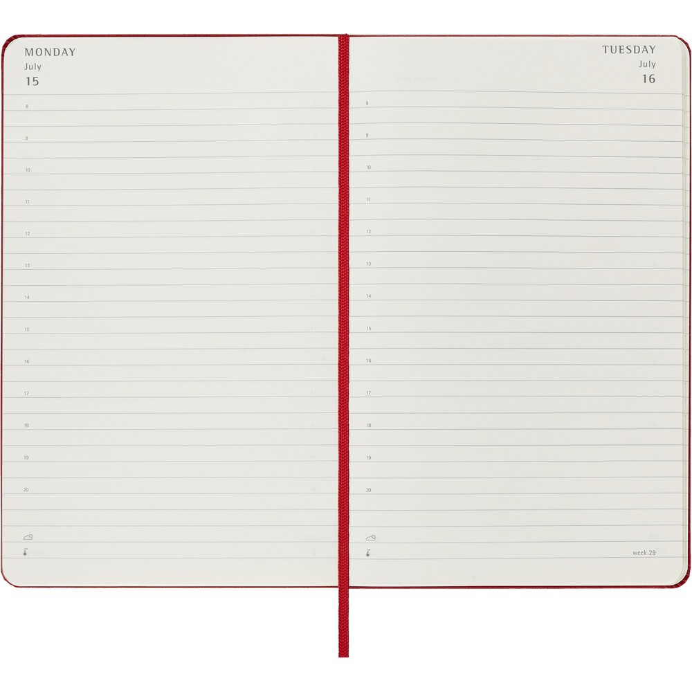 Kalendarz moleskine został wykonany z najwyższej jakości materiałów. Twarda okładka pokryta jest eleganckim, ciemnoniebieskim materiałem, który jest przyjemny w dotyku i odporny na zabrudzenia. Dzięki temu kalendarz nie tylko wygląda profesjonalnie, ale również jest trwały i wytrzymały. Minimalistyczny design z delikatnym logo Moleskine nadaje kalendarzowi nowoczesnego charakteru.