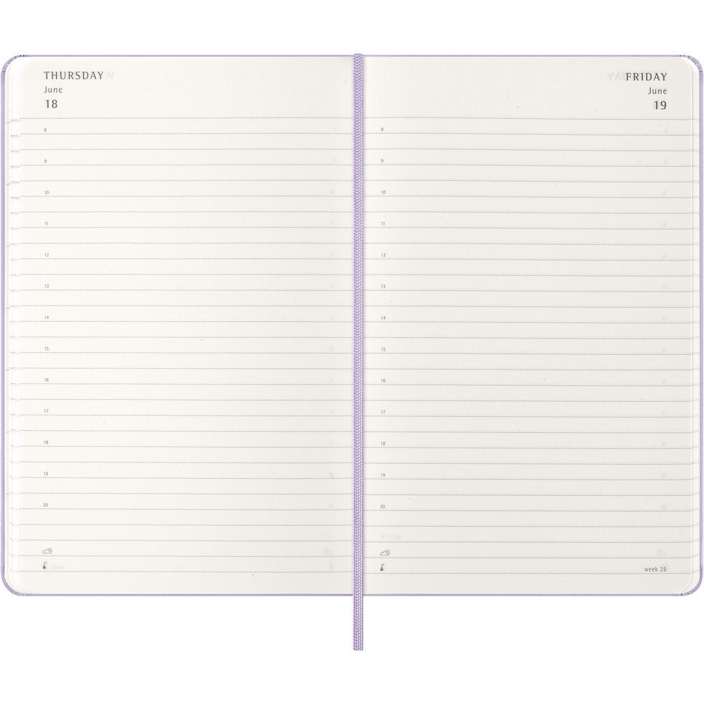 Kalendarz moleskine został wykonany z najwyższej jakości materiałów. Twarda okładka pokryta jest eleganckim, ciemnoniebieskim materiałem, który jest przyjemny w dotyku i odporny na zabrudzenia. Dzięki temu kalendarz nie tylko wygląda profesjonalnie, ale również jest trwały i wytrzymały. Minimalistyczny design z delikatnym logo Moleskine nadaje kalendarzowi nowoczesnego charakteru.