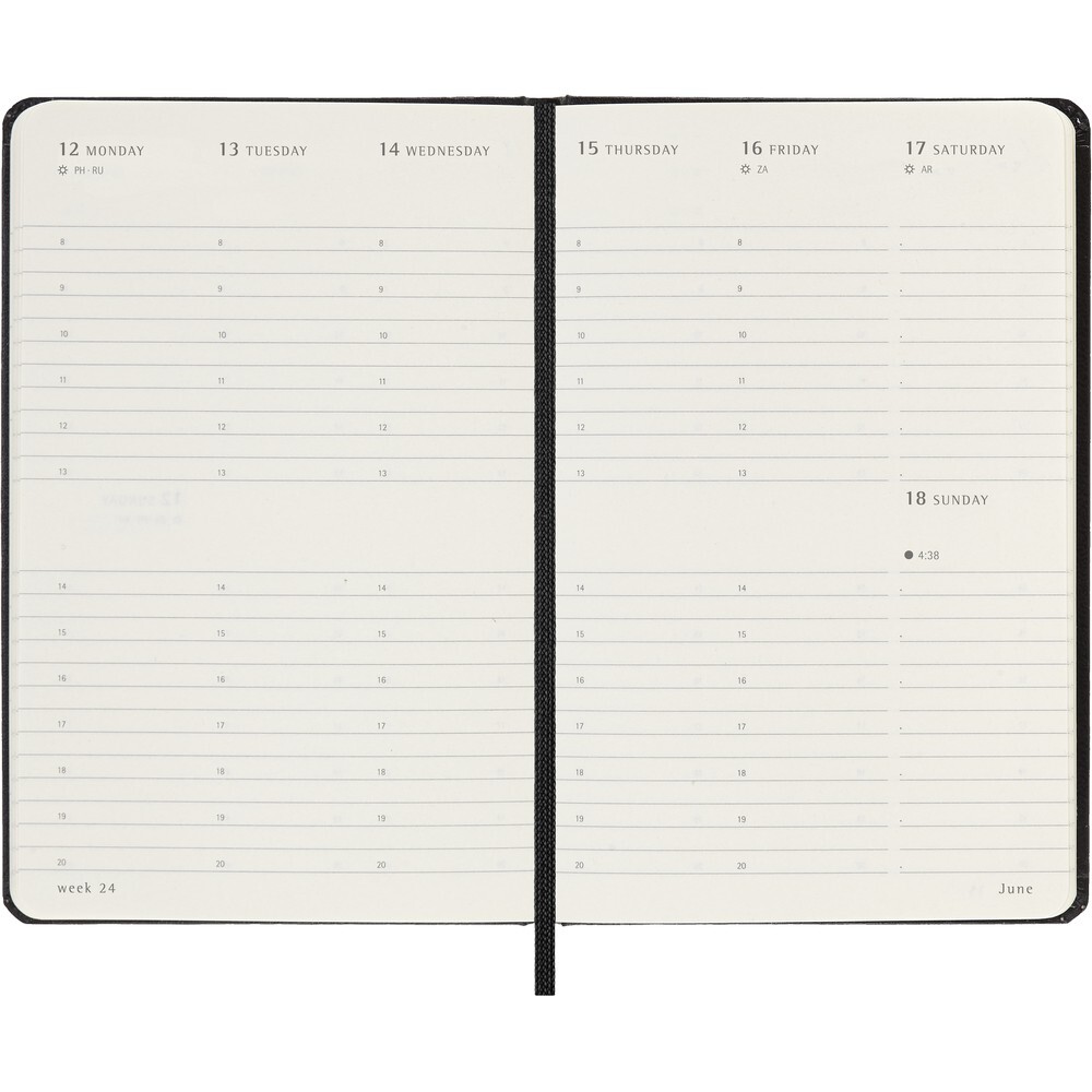 Kieszonkowy kalendarz Moleskine, tygodniowy, wertykalny, 144 strony, twarda okładka, zakładka i elastyczna opaska do zamykania