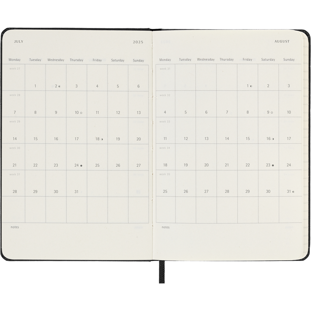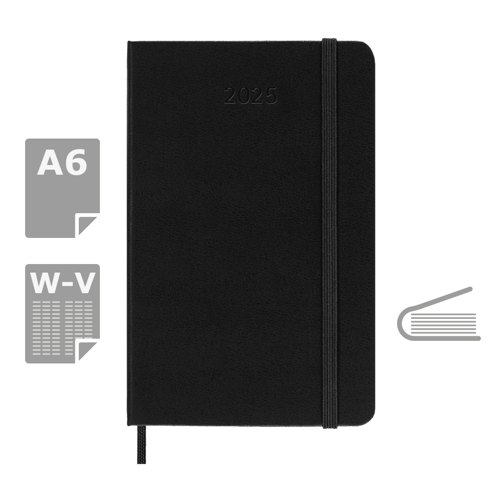 Kieszonkowy kalendarz Moleskine, tygodniowy, wertykalny, 144 strony, twarda okładka, zakładka i elastyczna opaska do zamykania
