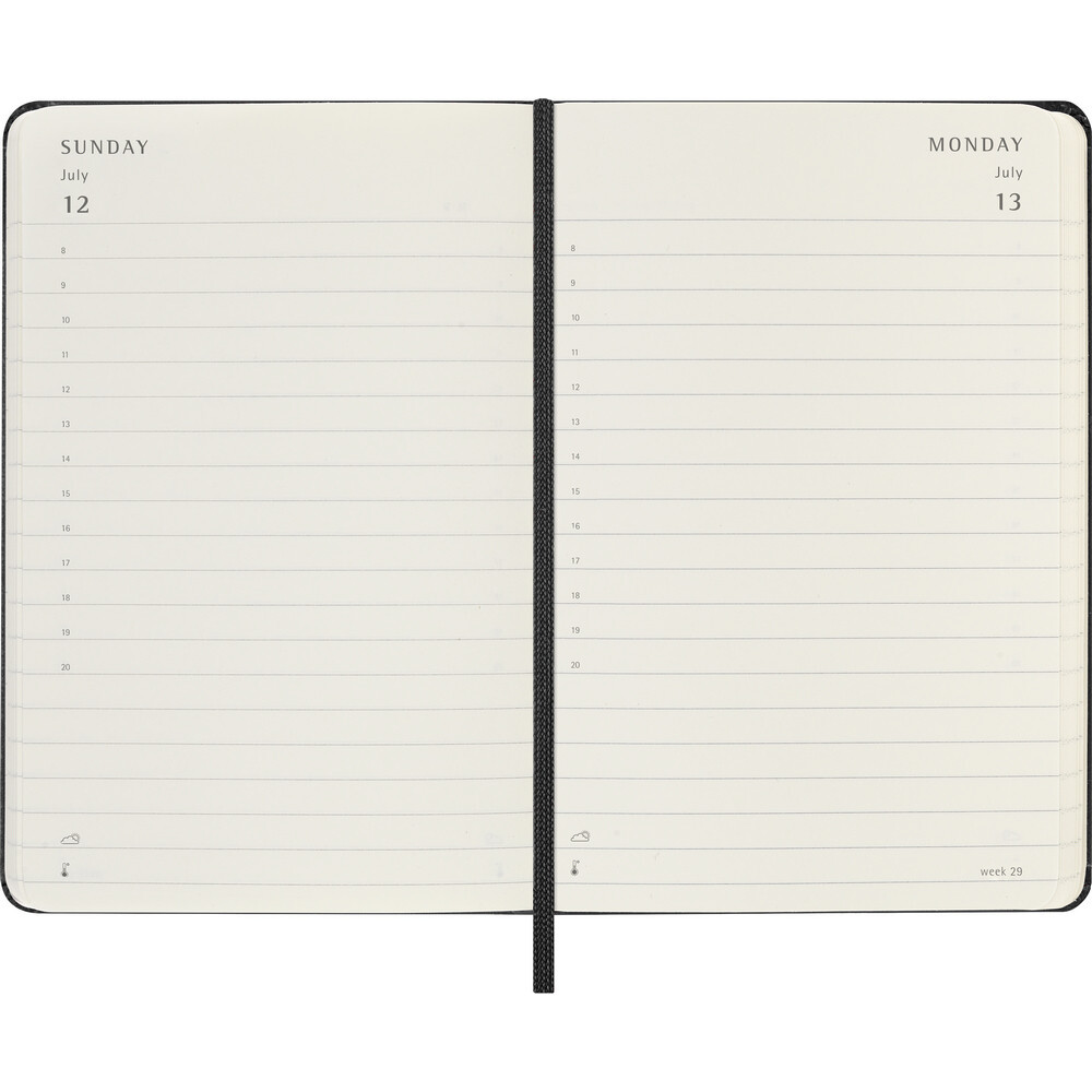 Kieszonkowy kalendarz dzienny Moleskine, 400 stron, twarda okładka, zakładka i elastyczna opaska do zamykania