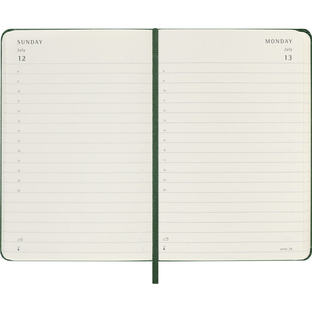 Kieszonkowy kalendarz dzienny Moleskine, 400 stron, twarda okładka, zakładka i elastyczna opaska do zamykania