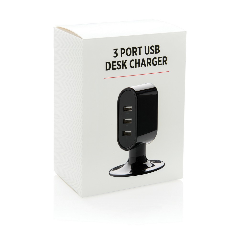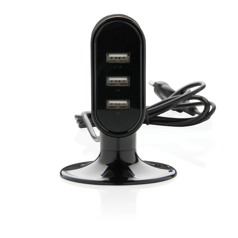 Ładowarka na biurko, 3 porty USB / Czarny