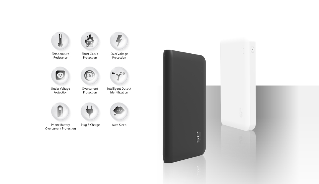 Power bank Silicon Power to pewne źródło awaryjnego zasilania dla urządzeń mobilnych. Wytrzymała obudowa o nowoczesnym designie i szereg praktycznych dodatków sprawiają, że otrzymujemy nowoczesne i stylowe urządzenie. Dużą wydajność produktu zapewnia jego pojemność (1500mAh) oraz dwa porty wyjściowe USB, które pozwalają na ładowanie dwóch urządzeń jednocześnie. Wskaźnik LED sygnalizuje pracę urządzenia. Pakiet zabezpieczeń przeciwko zbyt wysokim napięciom i natężeniem prądu, a także zabezpieczenia przeciwpożarowe i przeciwprzepięciowe gwarantują wysokie bezpieczeństwo użytkowania.