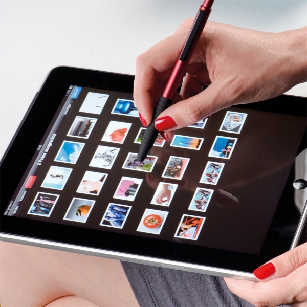 Wyjątkowy długopis ze specjalną funkcją. Ten plastikowy długopis metalicznego, błyszczącego projektu zawiera również touch pen na górze. Ponadto zawiera rownież niebieski wkład i gumowy uchwyt, dzieki któremu dobrze leży w dłoni. Twoją reklamę umieścimy pod klipem. Grupa znakowania: T1.
