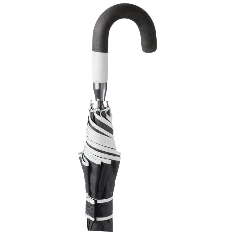 W dobrym stylu pomimo deszczu! Parasolka automatyczna wykonana jest z materiału 190-T pongee, ma dwukolorową metalową rączkę pokrytą gumowym materiałem. Pakowana pojedynczo w torebkę. Grupa nadruku: S2, TT2, TC.