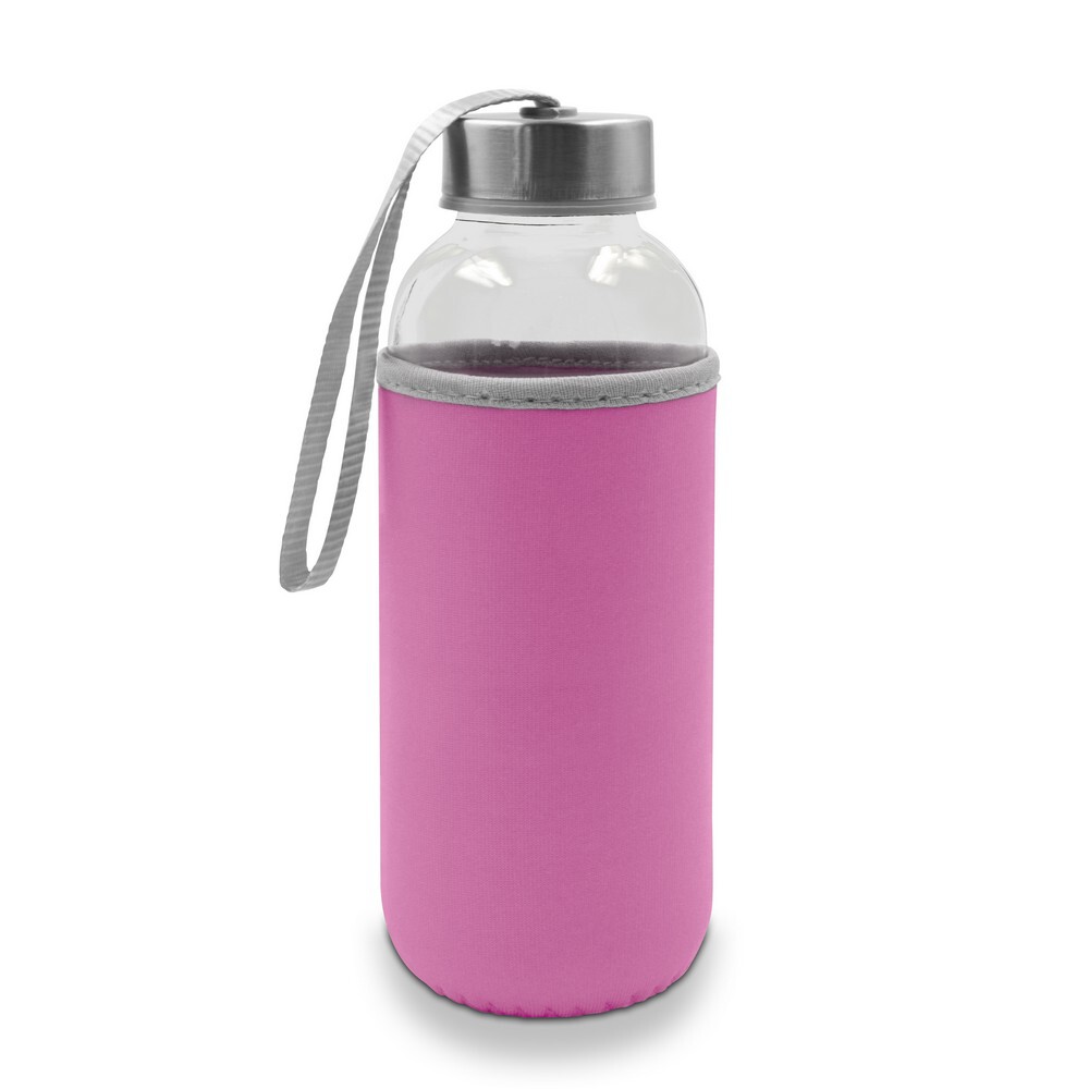 Szklana butelka 420 ml w pokrowcu | Bob / Różowy