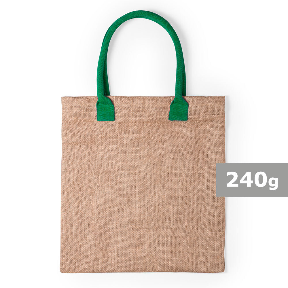 Torba z juty na zakupy, bawełniane uchwyty / Zielony