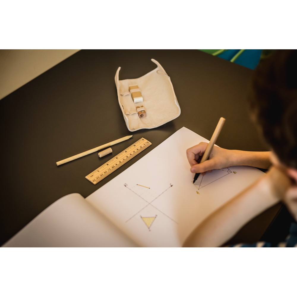 Zestaw szkolny w ekologicznym etui, linijka, ołówek, długopis, gumka i temperówka