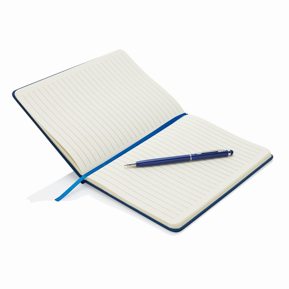 Zestaw upominkowy, notatnik A5 (80 kartek w linie), okładka z PU, miejsce na długopis i metalowy długopis, touch pen, w ozdobnym pudełku